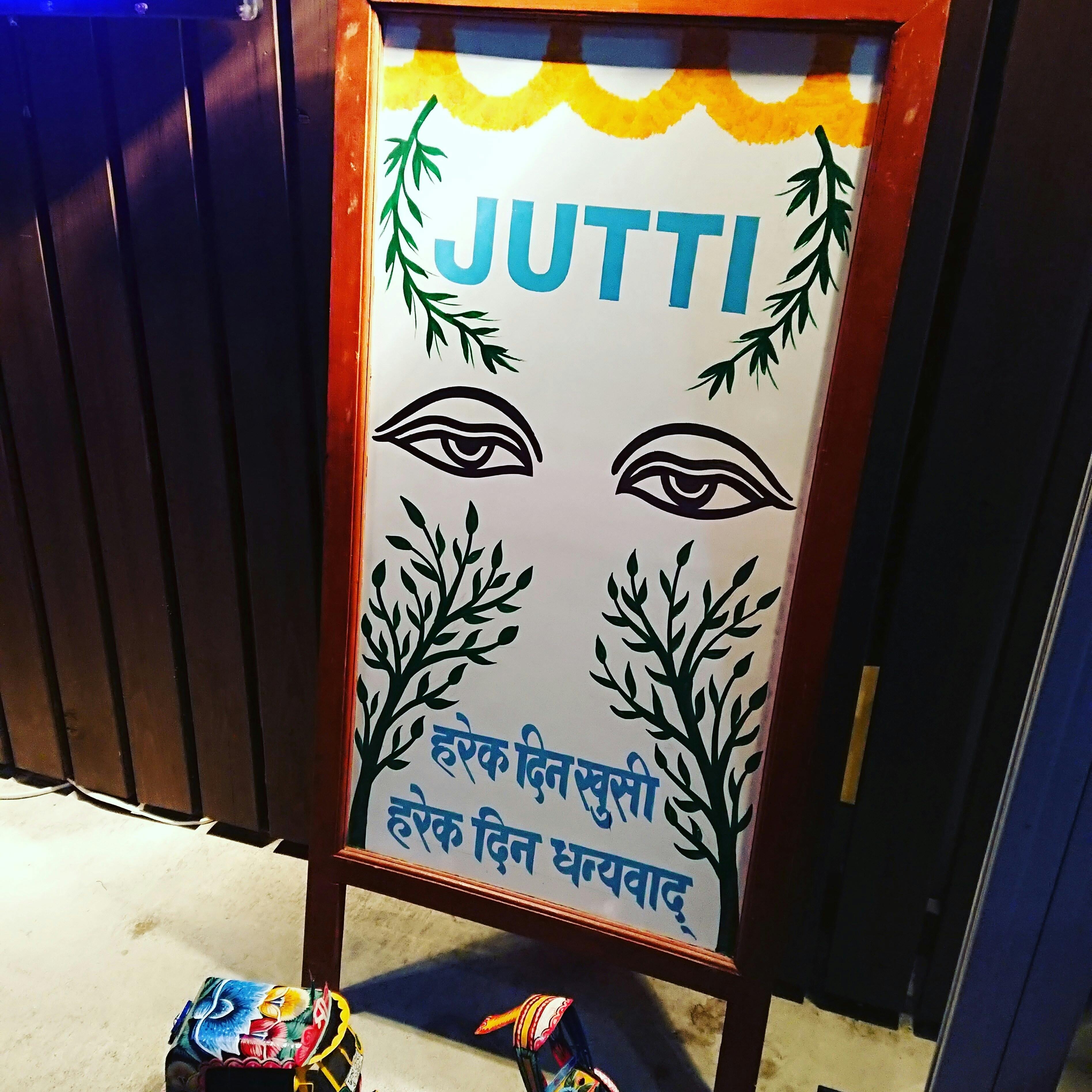 ネパールで作り日本まで持って帰ったこの看板がジュッティーの目印です。