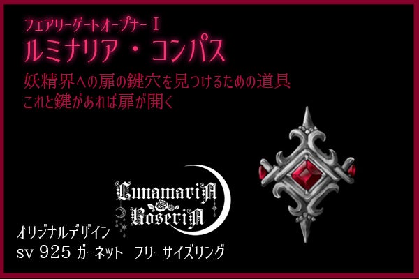 コンニチハ、ディンブラDeath★フフ~(*´ω`*)今日は、『本当の自分の美』を輝カセたい女性に贈るアクセサリーブランド"LunamariARoseriA"より、作品にまつわるストーリーをお届けシます~!ヾ(≧∀≦)ノ…アクセサリーといえバ、ワタシのコノ首飾り、昔はじめてお仕えしたご主人サマに頂いたのデスよ~(*‘∀‘)ノワタシがお屋敷を出る時に、毎日お付けだったブレスレットをお譲り下さったのデス(ノω・。)今もお元気でしょうカ…(*_ _)______★ ̄ ̄ ̄ ̄ ̄ ̄今日のオ話は『ルミナリア・コンパス』。ガーネットの嵌ったシルバーリングでシテ、30,000円~ご支援頂けマス!(*''ω''*)サイズはフリーですヨ!(`・ω・´)ゞコチラ、フェアリーゲートオープナーⅠと銘打たれてイマス~。ソの名の通り、妖精界ヘの門を開くツールなのですガ、、オープナーⅡである鍵もナイと実用に足りナイのですネ( ;∀;)ストーリーの主人公は、この二つを持ち合わせテいたのですネ~(*´∀`*)ソレは、まさシく運命。人のタメに善を選ぶ者に与えらレた、秘密のツールなのデス。ではデハ、お楽しみ下サイね!(*ゝω・)⌒☆―――☆――― ☆ 。 … ✴︎ ☆ 。 ✴︎ ★ ゜… 心の澄んだ者には、 妖精が見えるという。 ☆ 。 … ✴︎ ☆ ✴︎ ★ ゜… ★男は悩んでいた。ある薬が必要だった。艶やかだった金髪は光を失い、美しい蒼い瞳には疲労の色が濃く宿っていた。元々細かった手足は更に痩せ、青白い肌は潤いを欠いて目の下に深い影を落とす。もう何日もまともに寝ていない。食事だって、最後に摂ったのはいつだったか。ーー疫病が流行った。街の人々は次々と倒れ、笑顔が絶えた。植物学者であった私は、なんとか己の持つ薬草の知識で人々を救おうと努めた。しかし、どの薬草も人々を回復させることはなかった。だが、諦めるわけにはいかない。私はこの街の人々を助けなくては。人々の笑顔を、また見たいのだ。この街の人々は、変わり者の私を受け入れて、優しい微笑みをくれた。放浪の旅の果て、ふらふらと辿り着いた自分に暖かいパンとスープをくれ、柔らかなベッドに寝かせてくれたーー。不安で萎れそうになる心を落ち着けるように、彼は小さい頃両親に貰った鍵のペンダントを握った。この鍵はいつも彼に勇気を与えてくれたのだ。大丈夫だ、必ず活路は開ける!自分にそう言い聞かせ、男はまたパラパラと本をめくる。何処かに、何処かにあるはずなんだ。目が霞む。しっかりしなくては。自分を叱咤し、本に向かう。必ず助けたい、この街の人を!その時、積んだ本が崩れ、男の前に一冊の本が開かれた。そこには、神秘のレシピがあった。これだ。このレシピだ!しかし、そこに書かれていた神秘の薬の材料のうち、ひとつだけわからないものがあった。『妖精のハーブ』これは一体なんだろう。長い間植物学をやってきたが、こんな名前のハーブは聞いたこともない。男はまた頭を抱えた。コンコン。扉が鳴った。姿を現したのは、彼の旧友であった。友が住む街が大変だと聞いて、駆けつけたのだ。男は友に事情を話した。話を聞いた友は、自分はそのハーブを知らないが、代わりにこれをと、懐から一つの包みを取り出した。それは繊細な銀細工の指環だった。中央に柘榴石が嵌り、キラリと輝いている。これは人の為に尽くす者を、必要な場所へと必ず導くだろう。友はそう言い、指環を男の手に握らせ、眩い光と共に消えた。男は礼を言い、『妖精のハーブ』を探すべく指環と共に森に入った。森に入ると、自然と道が開ける不思議な感覚があった。男は自分の行くべき道を直感で分かるようになり、どんどんと森の奥に分け入る。早く、早く薬を作らねば。男は気が急くあまり、足元に這う根に躓いて、その拍子に指環が木のうろに転げてしまった。慌ててそれを拾おうと身を屈め覗き込むと、そこにはきらきらと輝く鍵穴が見える。すると、首からかけていた鍵のペンダントが、まるで奇跡のように鍵穴へと滑り、それは見事にカチリと嵌ったのだった。その瞬間、目の前に光が溢れた。あまりの眩しさに男は両手で目を覆った。覆っても尚、光は溢れた。洪水のような煌めきが、涼やかな音が、清涼な香りの風が吹く。しばらくして目を開けると、そこには美しい世界が広がっていた。本でしか見たことのない、透けた美しい羽を持つ存在が、ふわりふわりと舞っている。木々は煌めき、黄金の林檎がたわわに実り、光の玉がゆっくりと旋回し、金色の粉を振り撒きながら、楽しげな声を響かせた。呆然とそれらを眺める男の前に、一層眩い光がスパークした。そして目を開けると、そこには絢爛なドレスを纏った、妖艶な女性が立っていた。彼女はここを妖精の国だといい、自分は妖精の姫だと言う。ここは人間は入れない場所、何をしに来たのだと問う姫に、男は事情を説明した。姫はそれを聞き、男の真摯な態度に人間の善の可能性を認めたようで、男に一握りのハーブを与えた。そして澄んだ声で告げた。 人間が清い心を忘