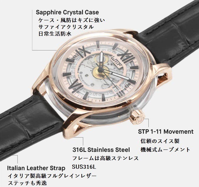 クリスタルの圧倒的な美しさにも魅了されることでしょう。内部の駆動状態もはっきりと確認できます。