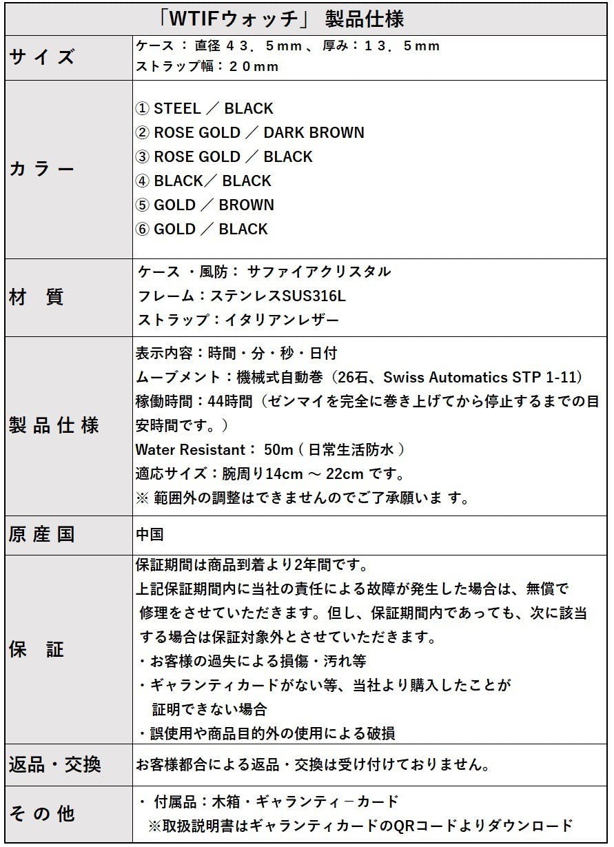 「WTIFウォッチ」では世界最高峰と名高いスイス製のムーブメントを採用しております。