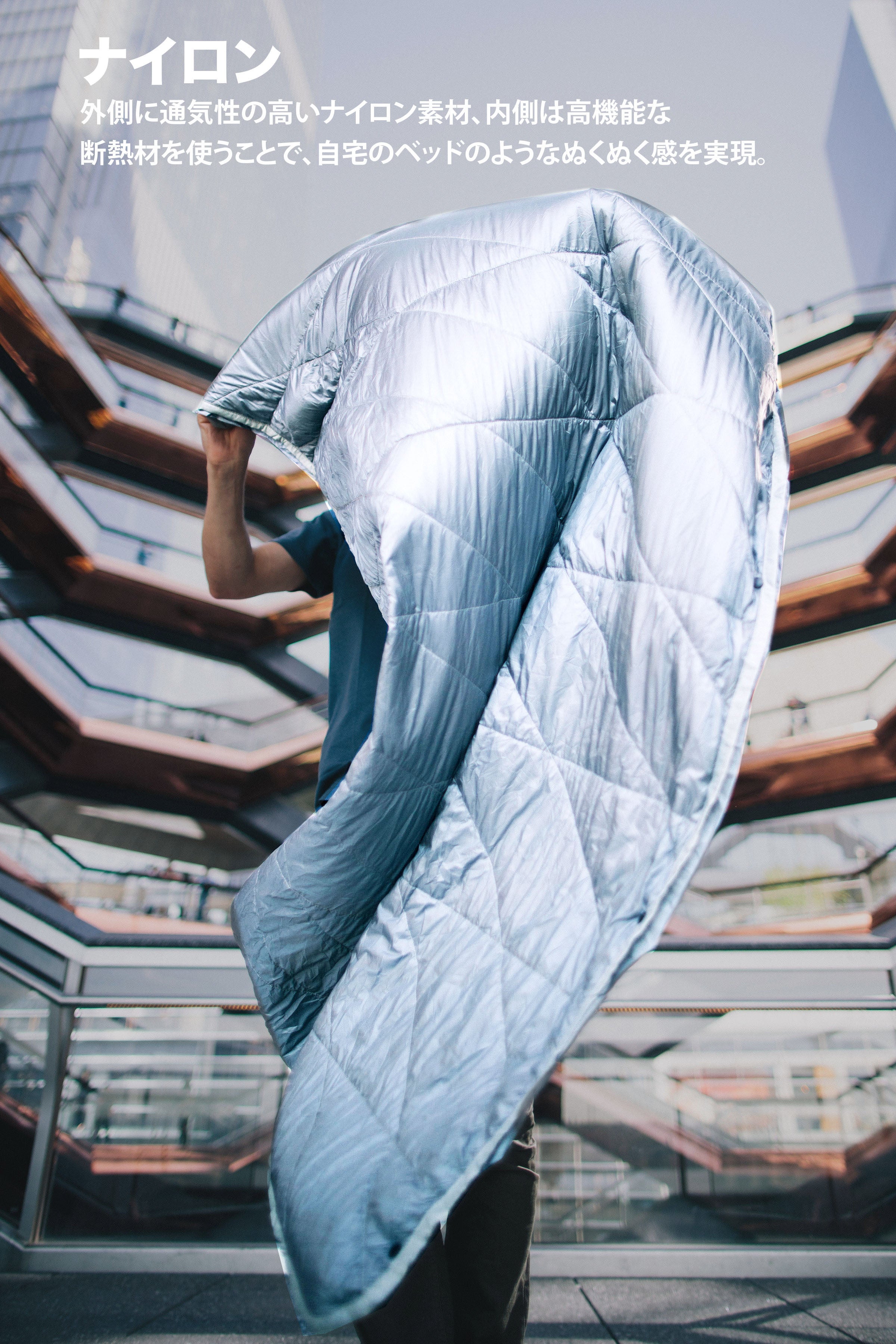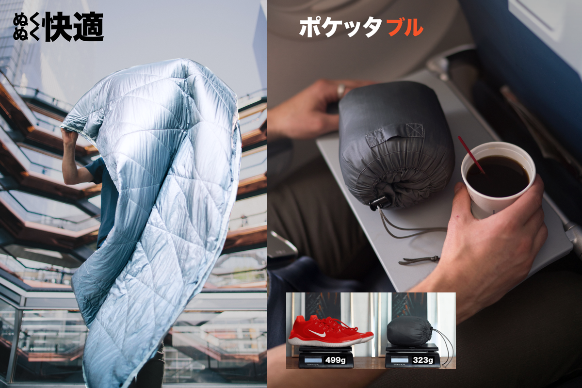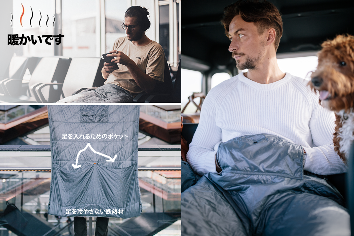 今まではブランケット(毛布)を持ち運ぶなんて現時的ではなかったけど、素材の進化と、僕たちのアイデアで、みんなの移動中の時間に「快適」をお約束します。