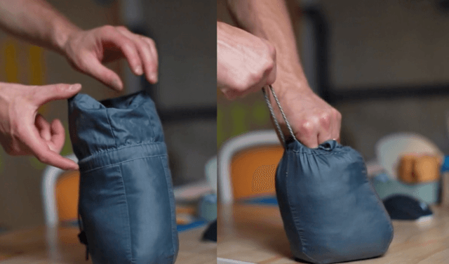 類似製品でコンパクトにできるパーカーやダウンジャケットなどはギリギリのサイズで作っているため「詰める」作業に手間取ったりします。GRAVELポケッタブル・ブランケットは収納袋の高さに8センチの余裕を持たせていることと、引き紐に丈夫でグリップ力の高いパラコードを使用しているのが特徴です。