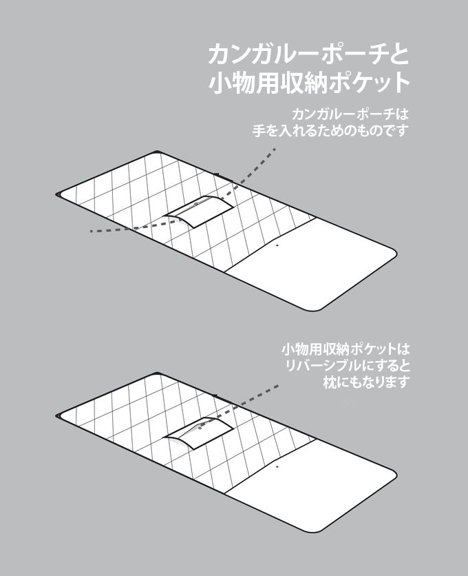 ブランケットを利用している時に紛失しない様に本体に収納できるジッパー付きポケットが横についています。とりはずすことも可能です。