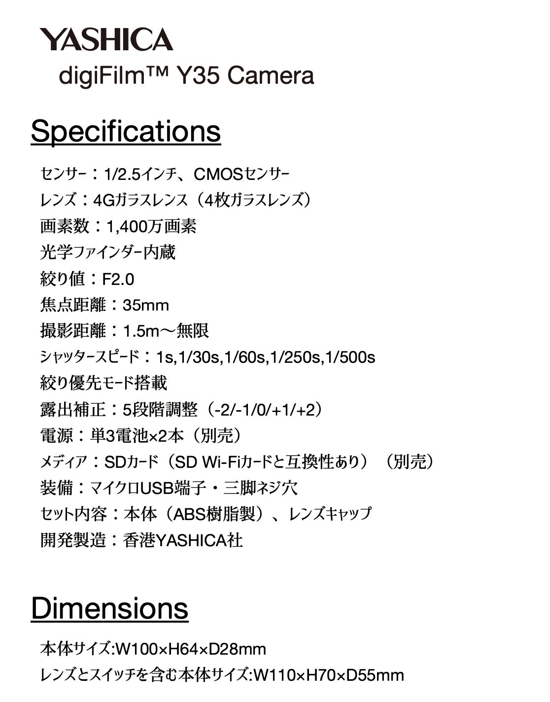 YASHICA Y35 は、世界で初めての電子制御シャッターカメラの傑作である YASHICA Electro 35を模したデザインを採用し、前例のないdigiFilm™️システムを搭載し写真を撮る楽しみを体験できます。