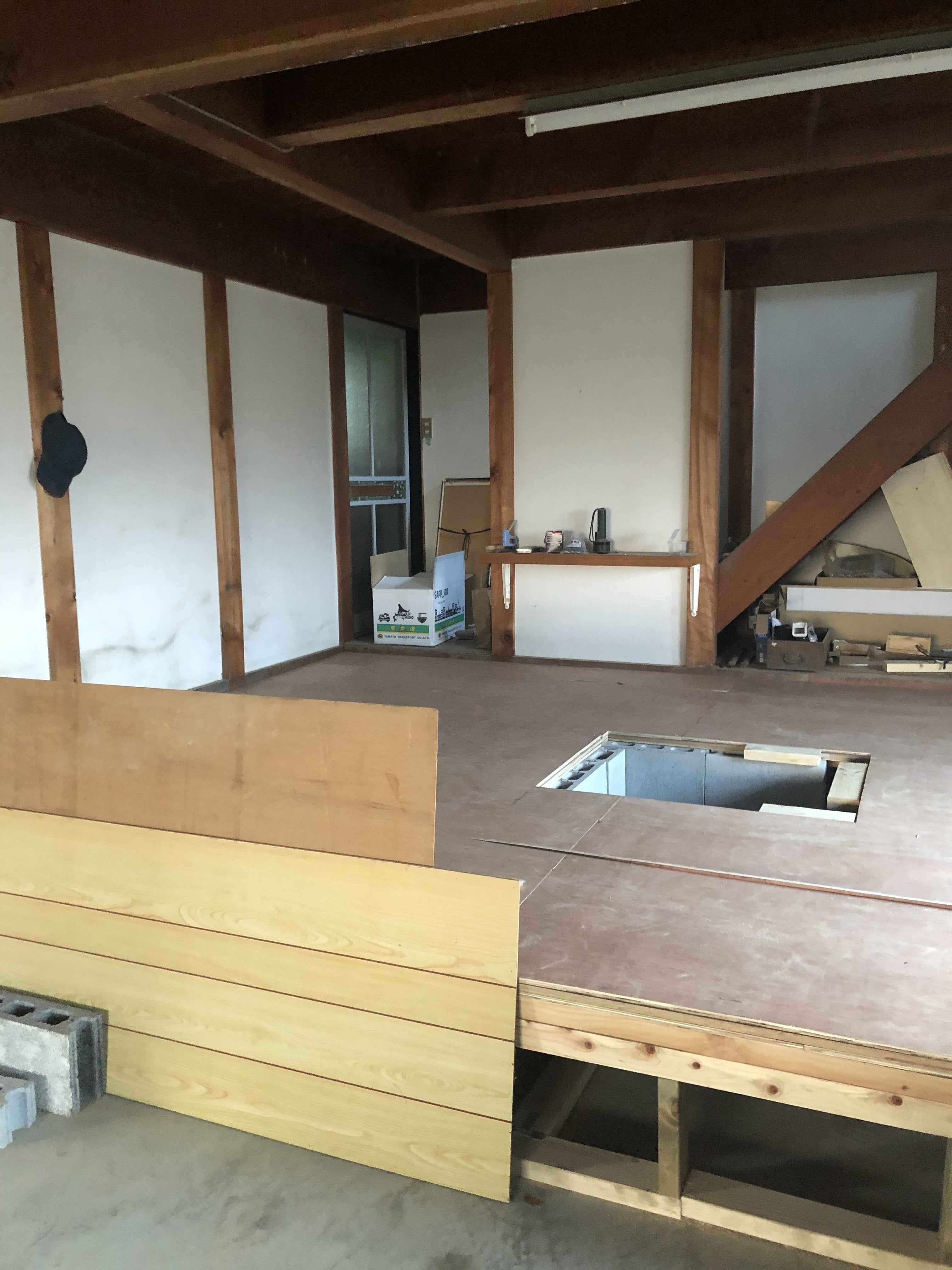 犬舎エリアに、何もなかった土間に犬と人が集える床の間と囲炉裏を作りました。