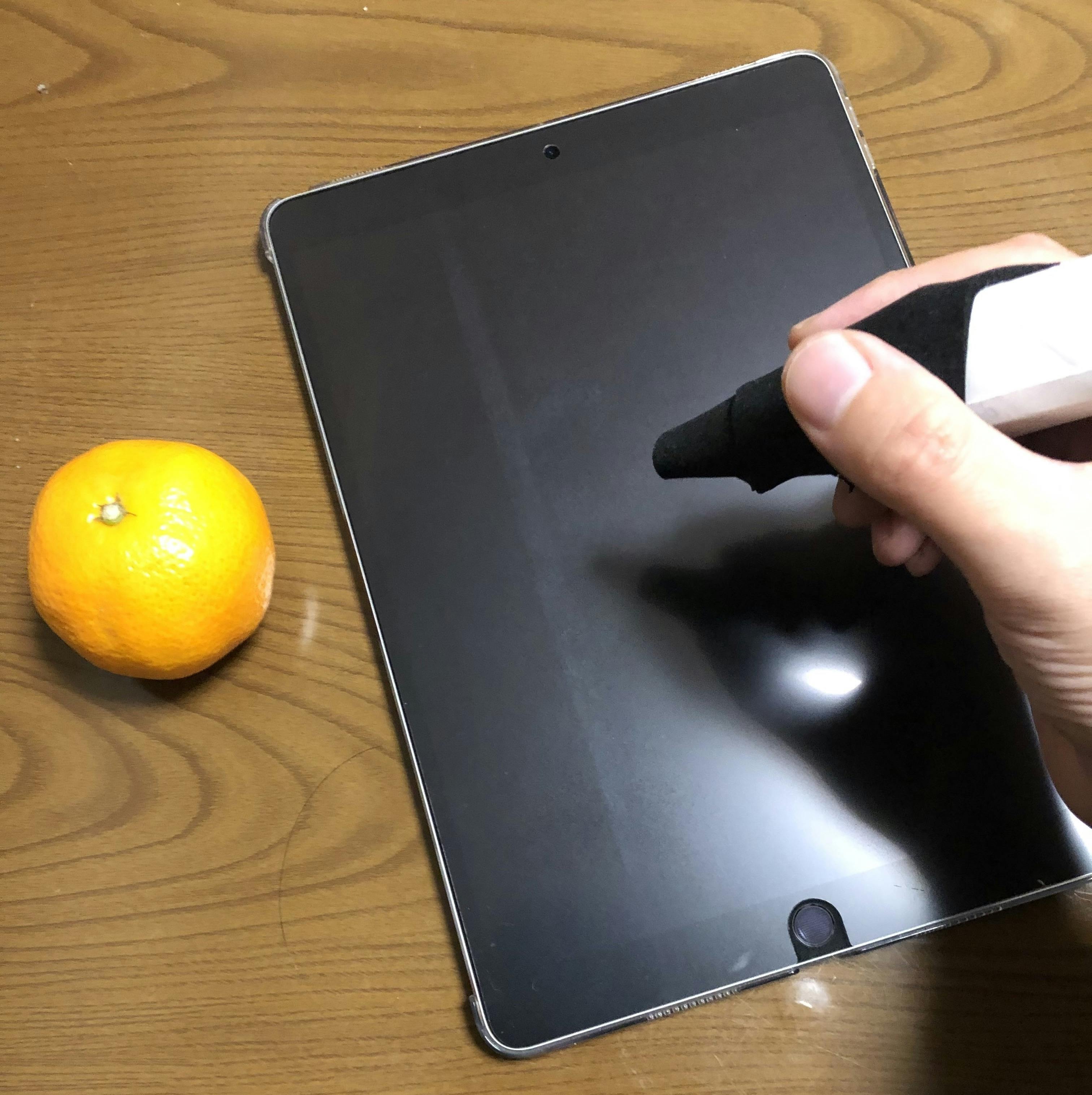 リンゴの色をぬりたい時は、実際のリンゴを探し、専用ペンデバイスでそのリンゴにタッチし、そのままそのペンでタブレットなどでお描きが可能です。