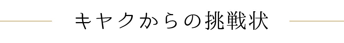 その、第一弾としてキヤクを発表いたします。