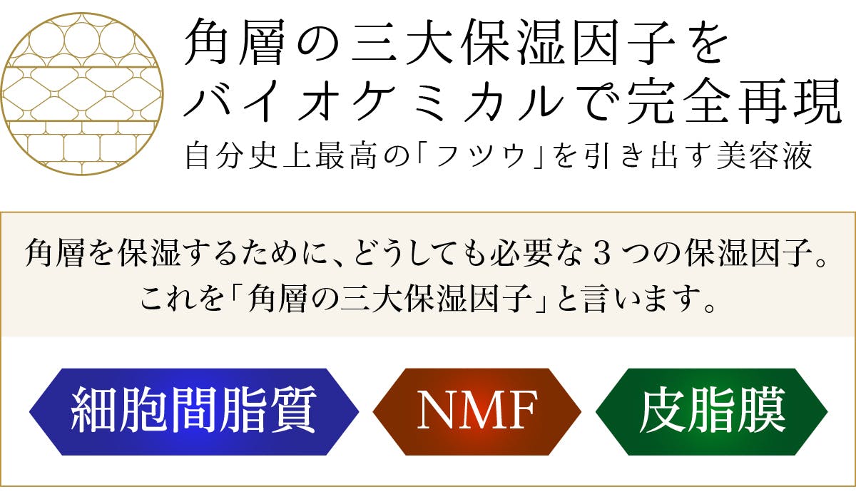 また、角層の三大保湿因子は、肌へ保湿成分や美容成分を引き込むための、親和剤となり、導入剤となり、軌道の確保もしてくれます。