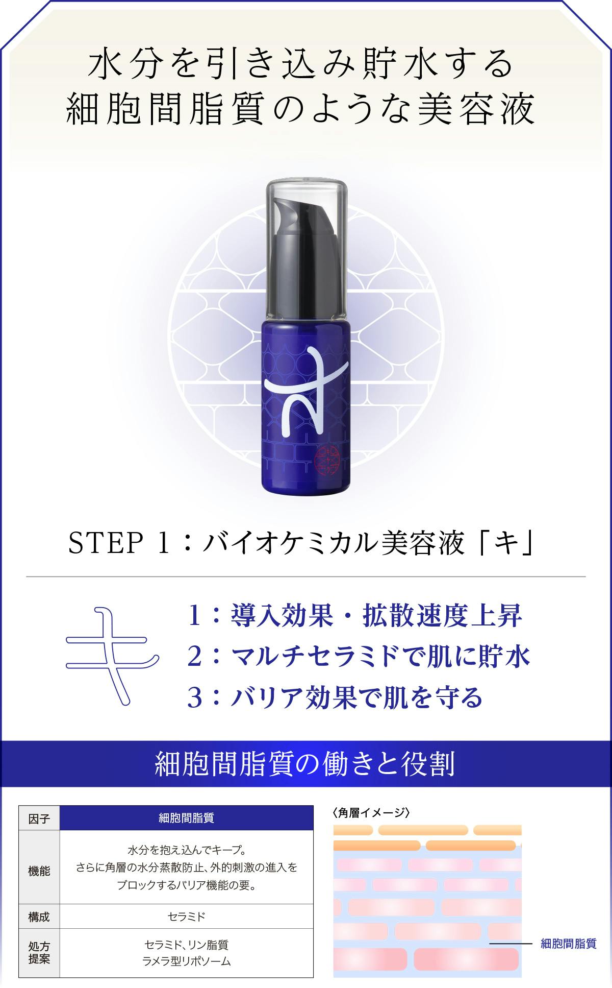 1. 細胞間脂質美容液:バイオケミカル美容液「キ」