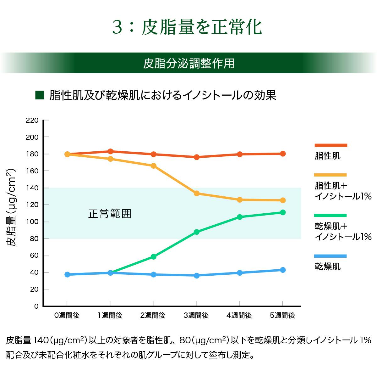 ⇒脂性肌、乾燥肌ともに皮脂量を正常範囲に調節