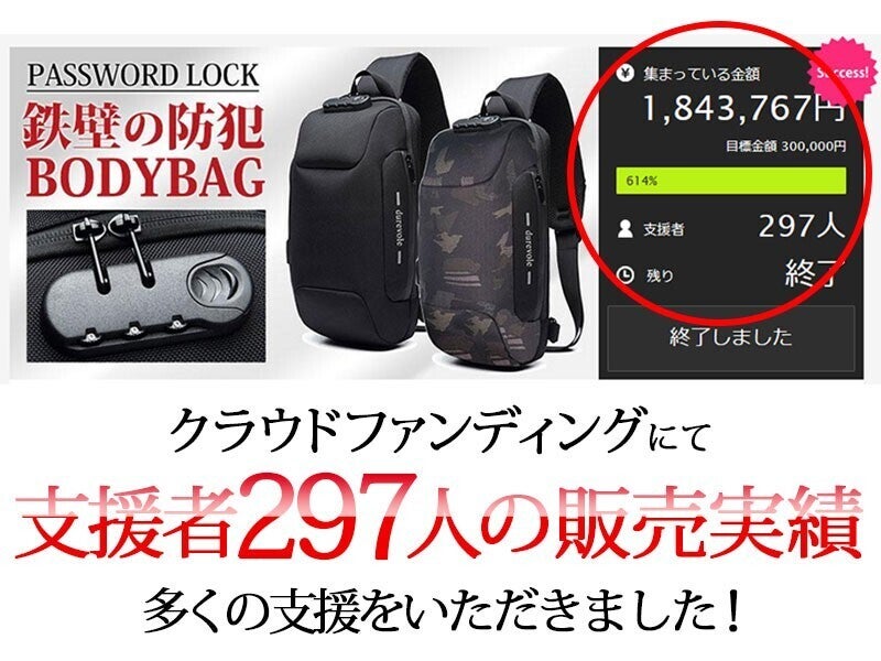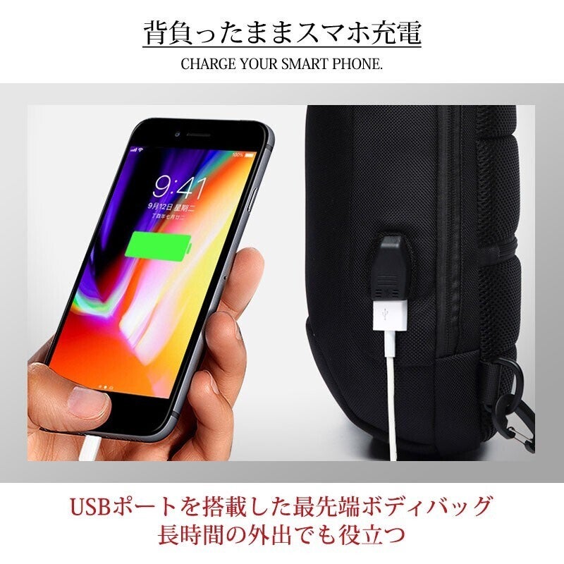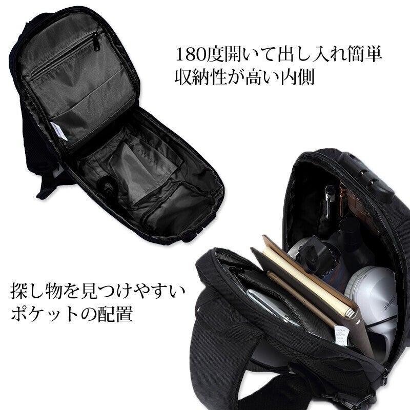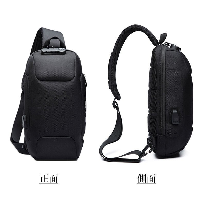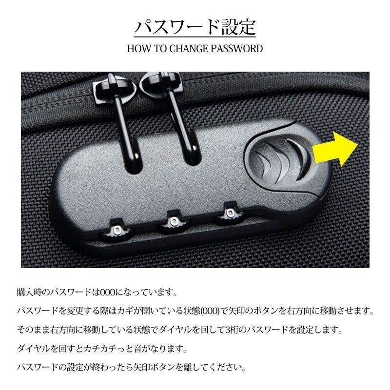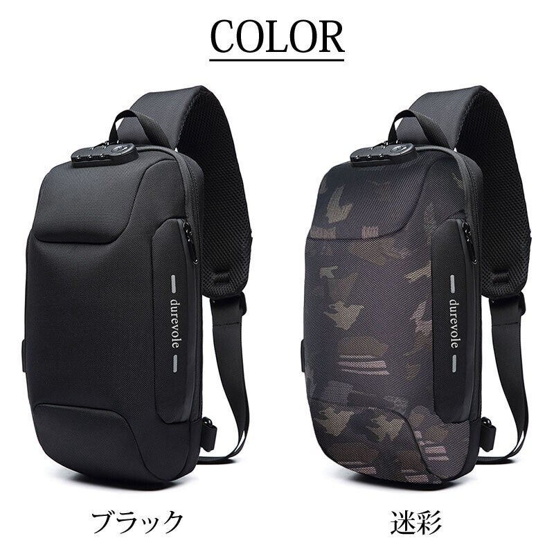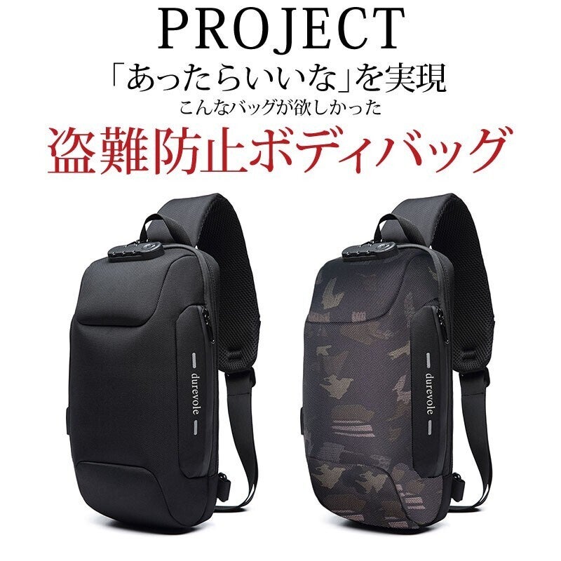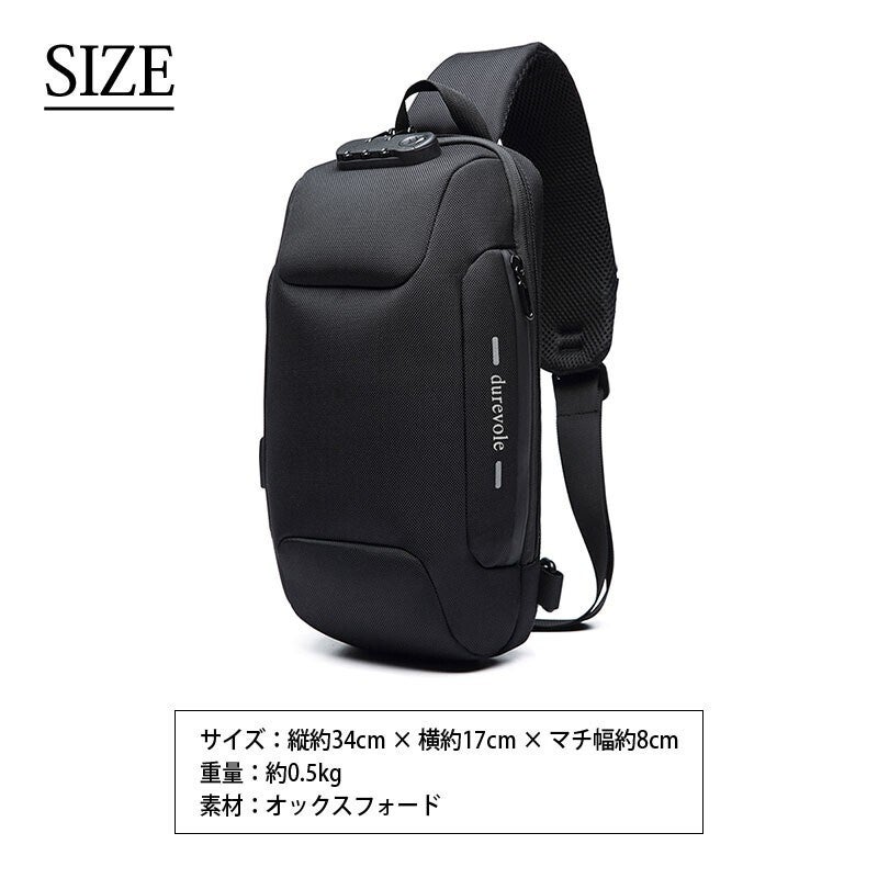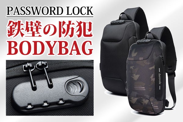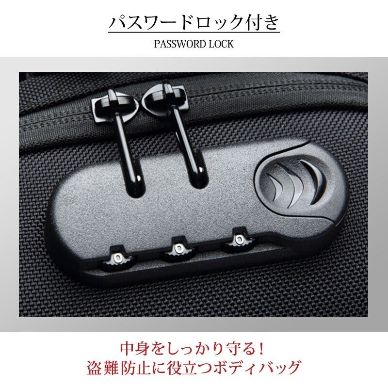 こちらのボディバッグにはパスワード式のカギが付いています。海外旅行先やライブ会場、満員電車などでの盗難対策もバッチリ!