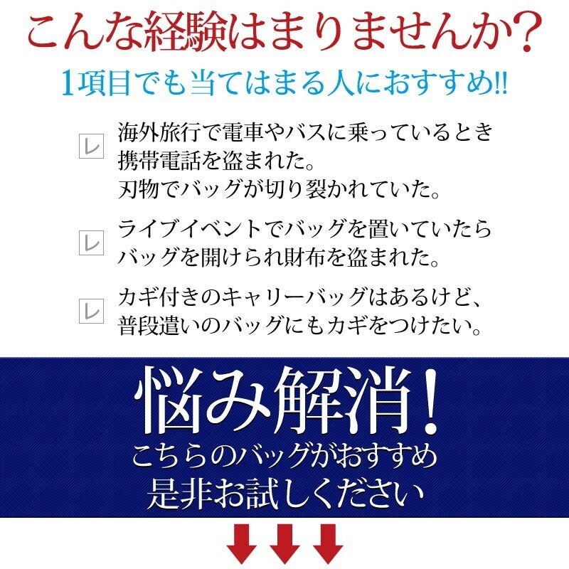 海外旅行に役立つボディバッグ。混雑している電車内やバス内で無理やりカバンをナイフやカッターなどで切って中身を盗もうとするスリへの対策として、防刃素材を使用しています。まさにトラベルバックにふさわしいでしょう。