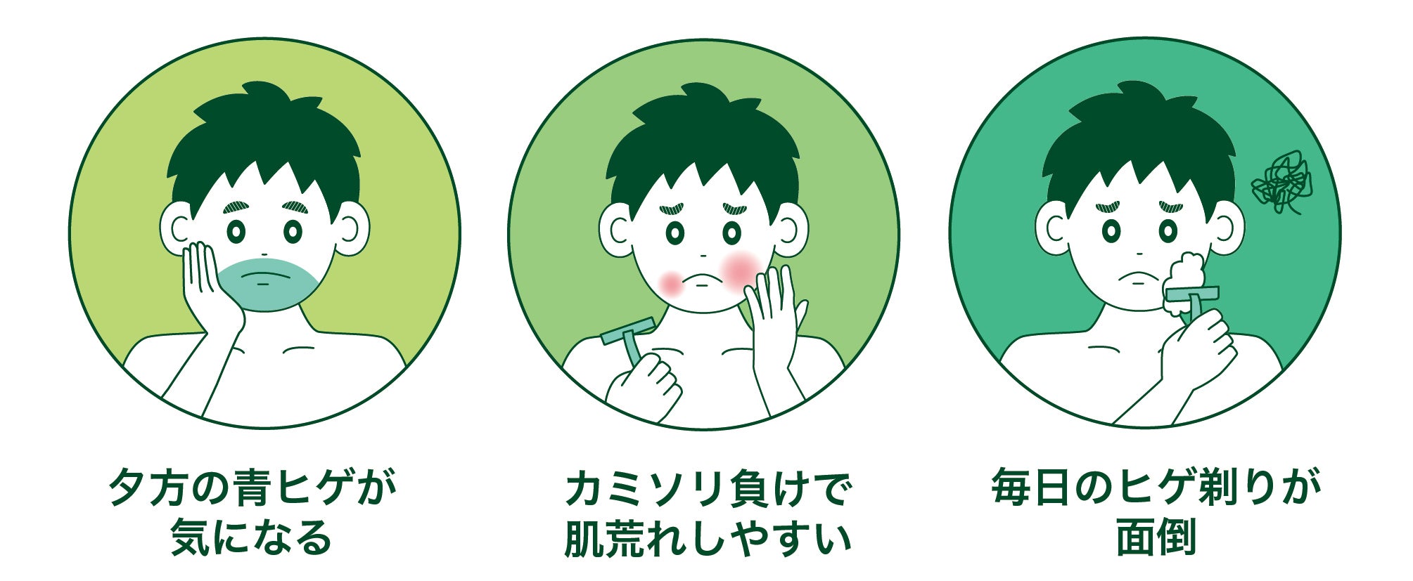普段通りの処理では限界があり、毎日のヒゲ剃りが面倒な上にカミソリ負け。朝にヒゲを剃っても夕方になるとヒゲが伸びてしまい清潔感のない印象になってしまうのがとても嫌でした。