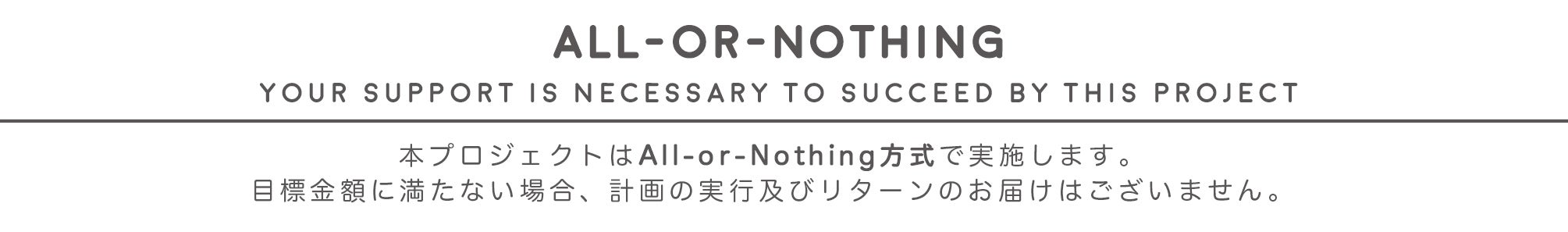 A:このプロジェクトはAll-or-Nothing方式で実施になります。目標金額に達しなかった場合、プロジェクトは実施されず支援金は返金されます。