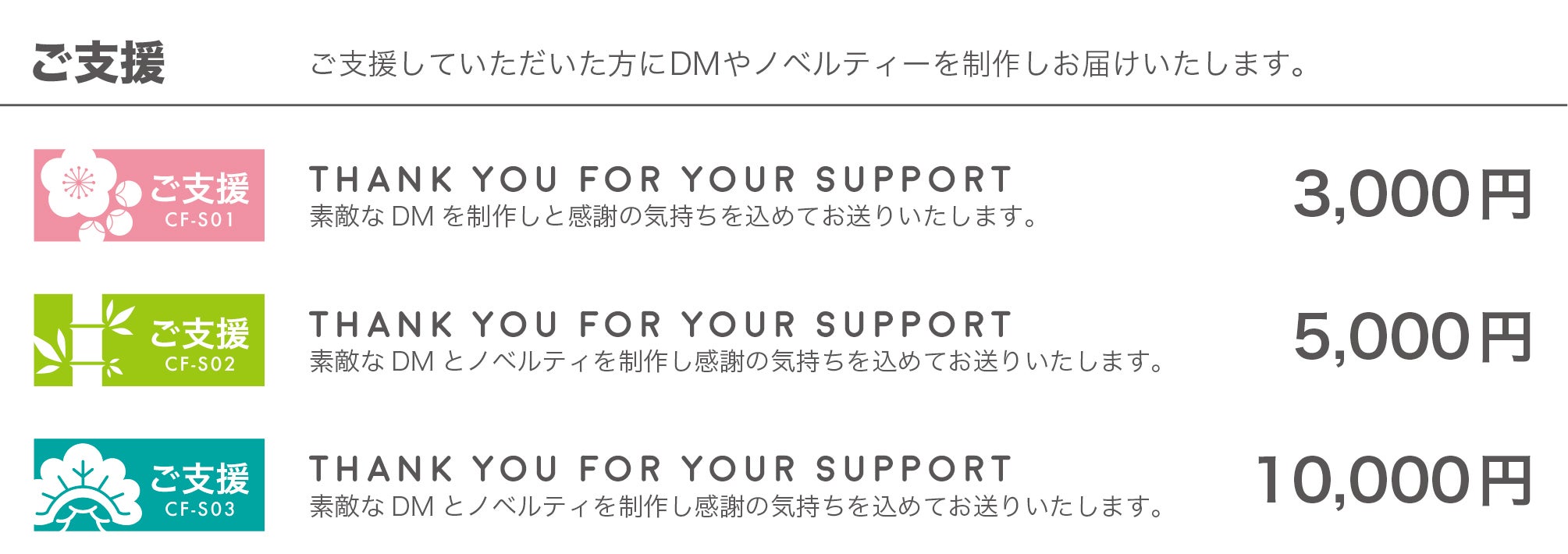 今回支援してくださった方には通常の価格よりお得になるような設定をしております。