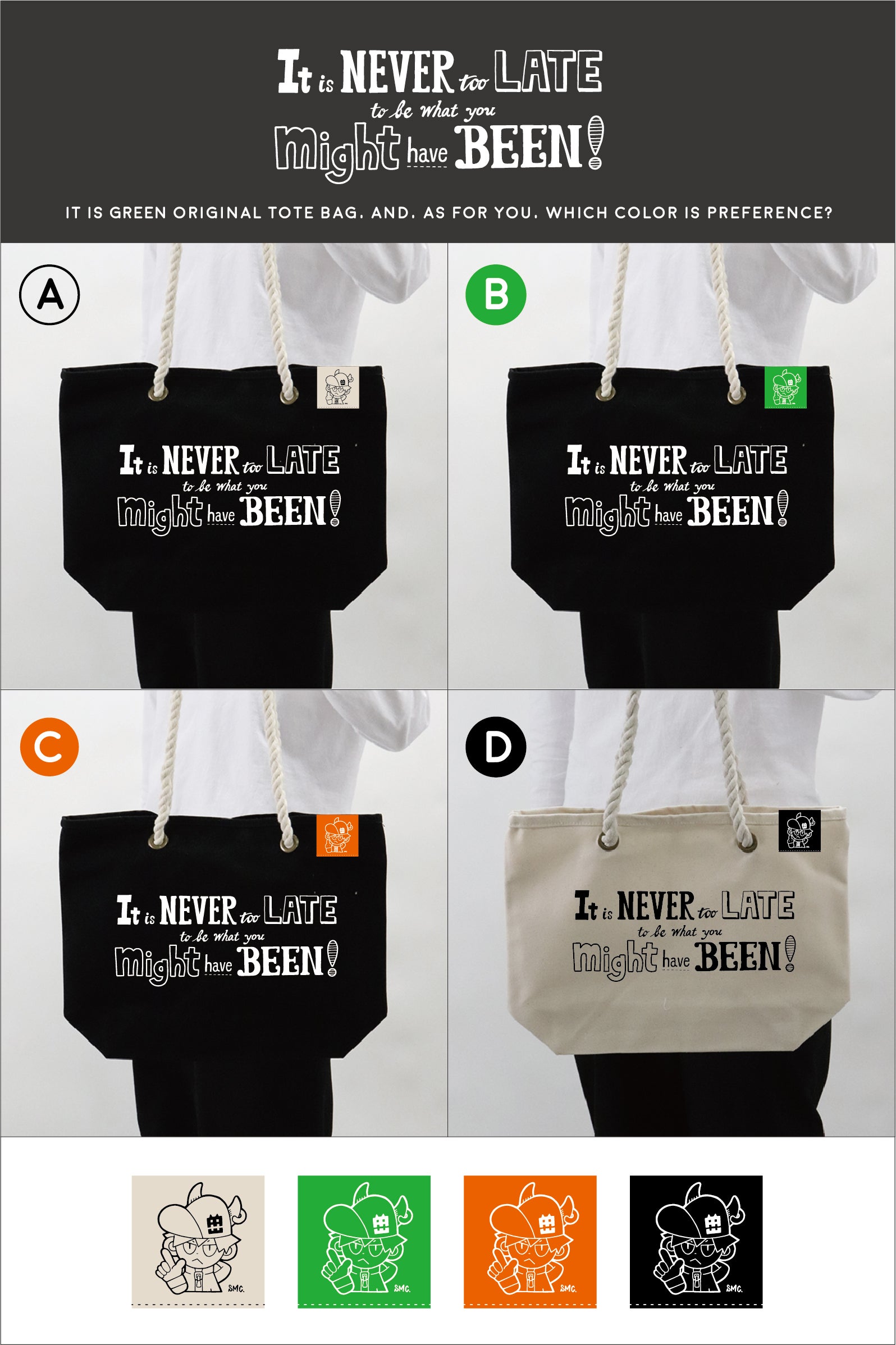 ▲リターンのトートバッグデザインです。4種よりお選びいただけます。