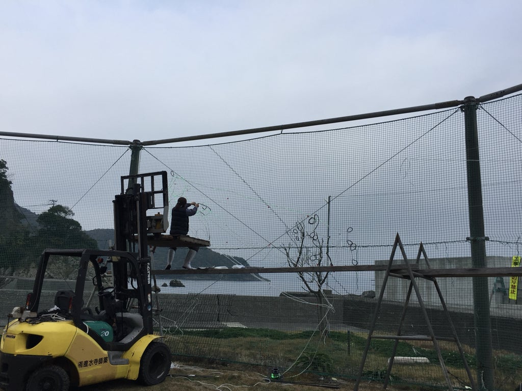 地元の漁師さん中心とした60代・70代の方が、木に登ってイルミネーションを飾り付けたり