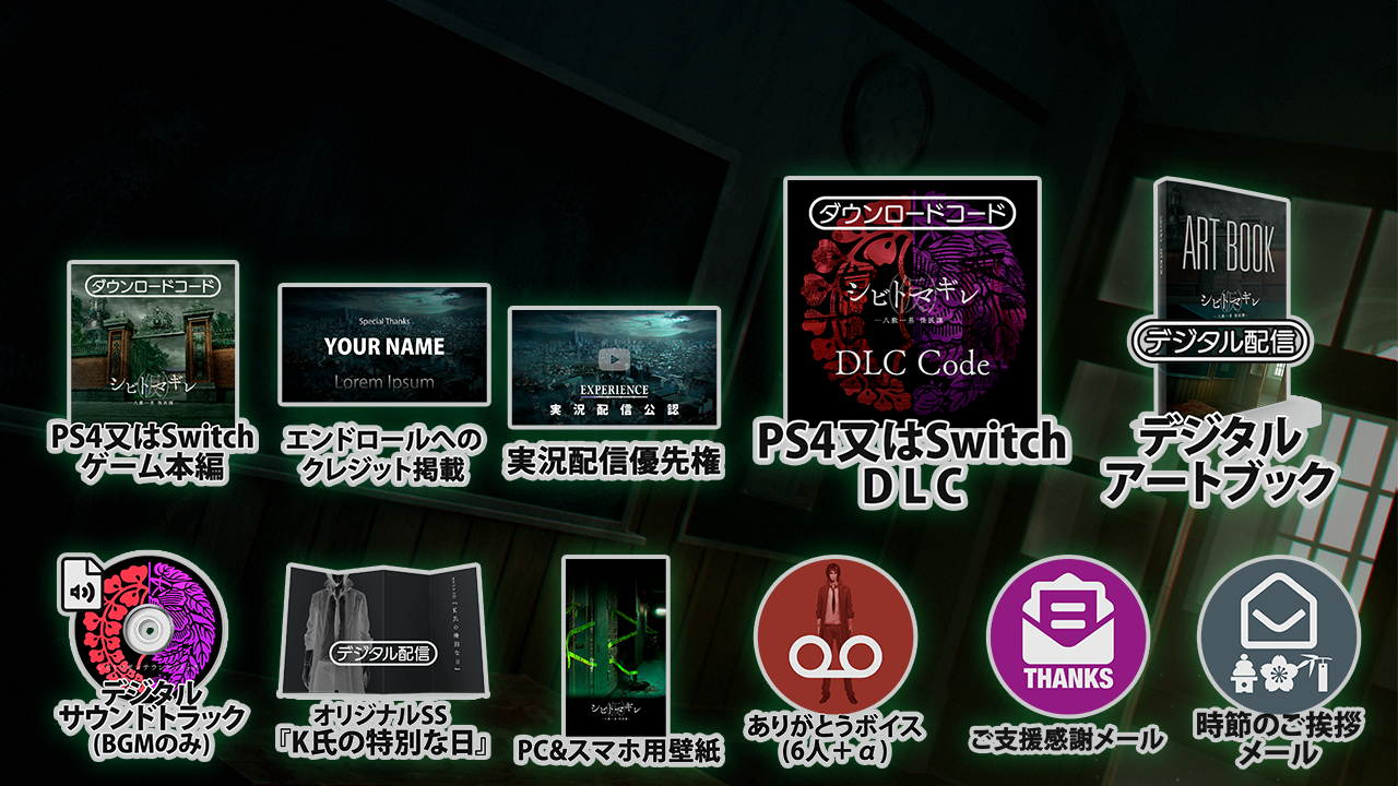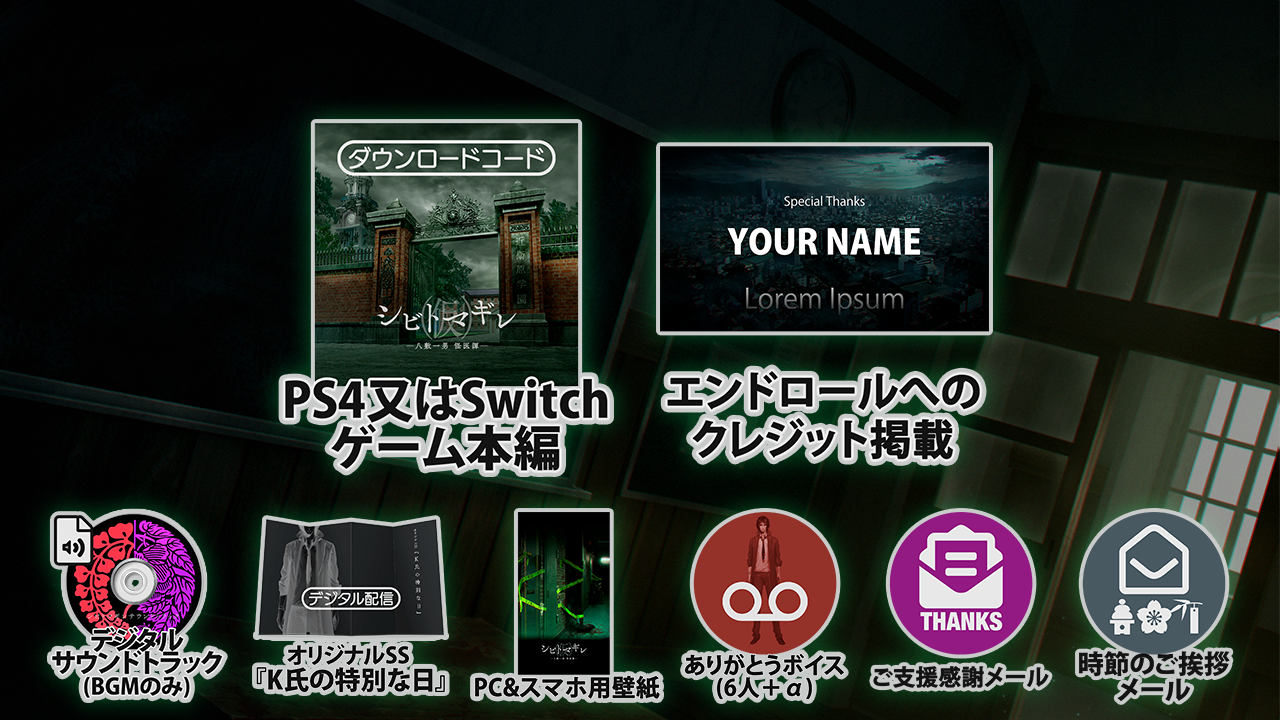 ゲーム本編(ダウンロードコード)/実況配信優先権/ご支援感謝メール