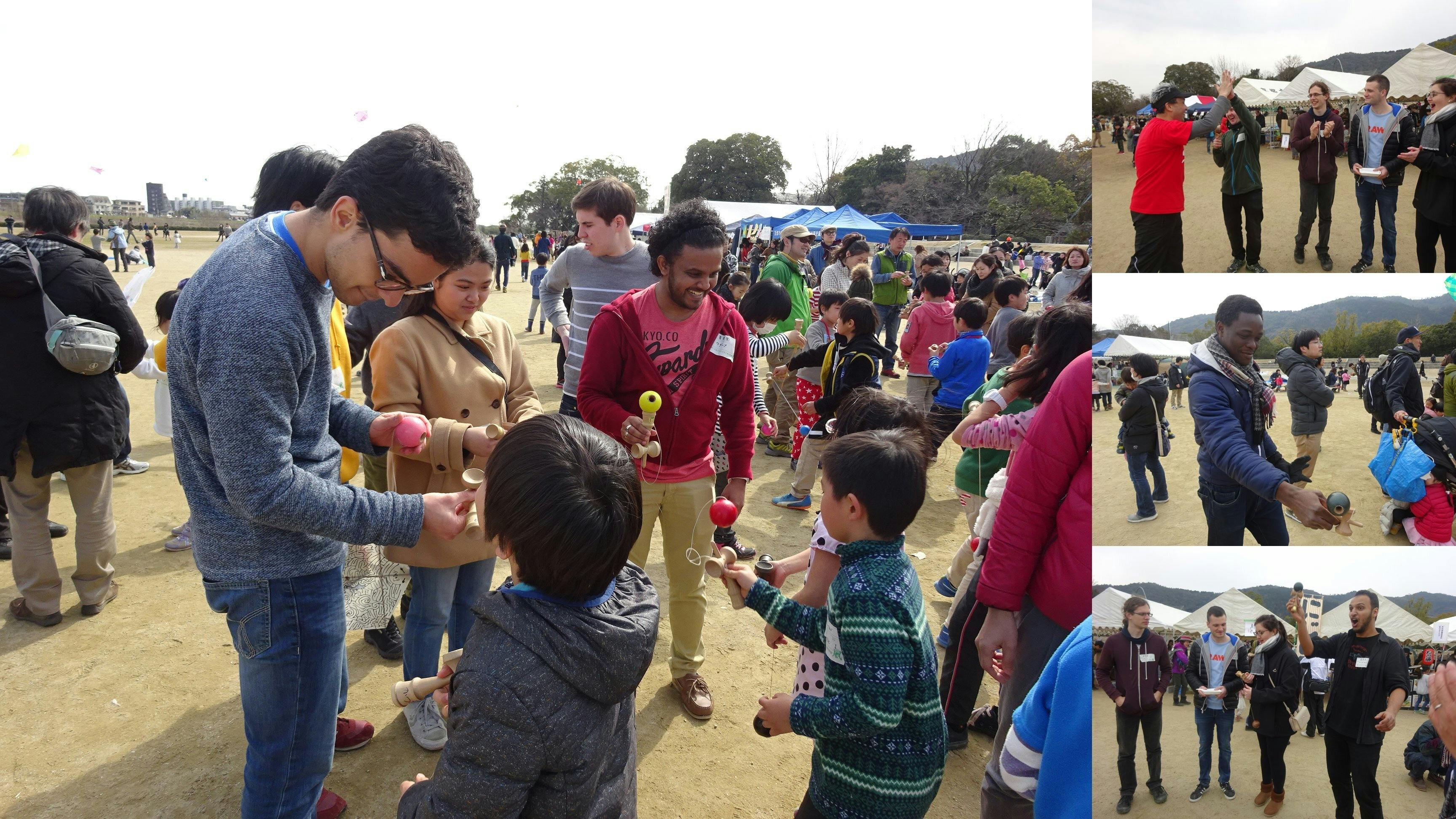また、地域と子どもたちとの国際交流活動の一環として、京都で学んでいる留学生たちを大会に招き、日本の伝統遊び文化を体験してもらう企画として、凧あげの他にけん玉遊びを通じた交流活動も実施します。
