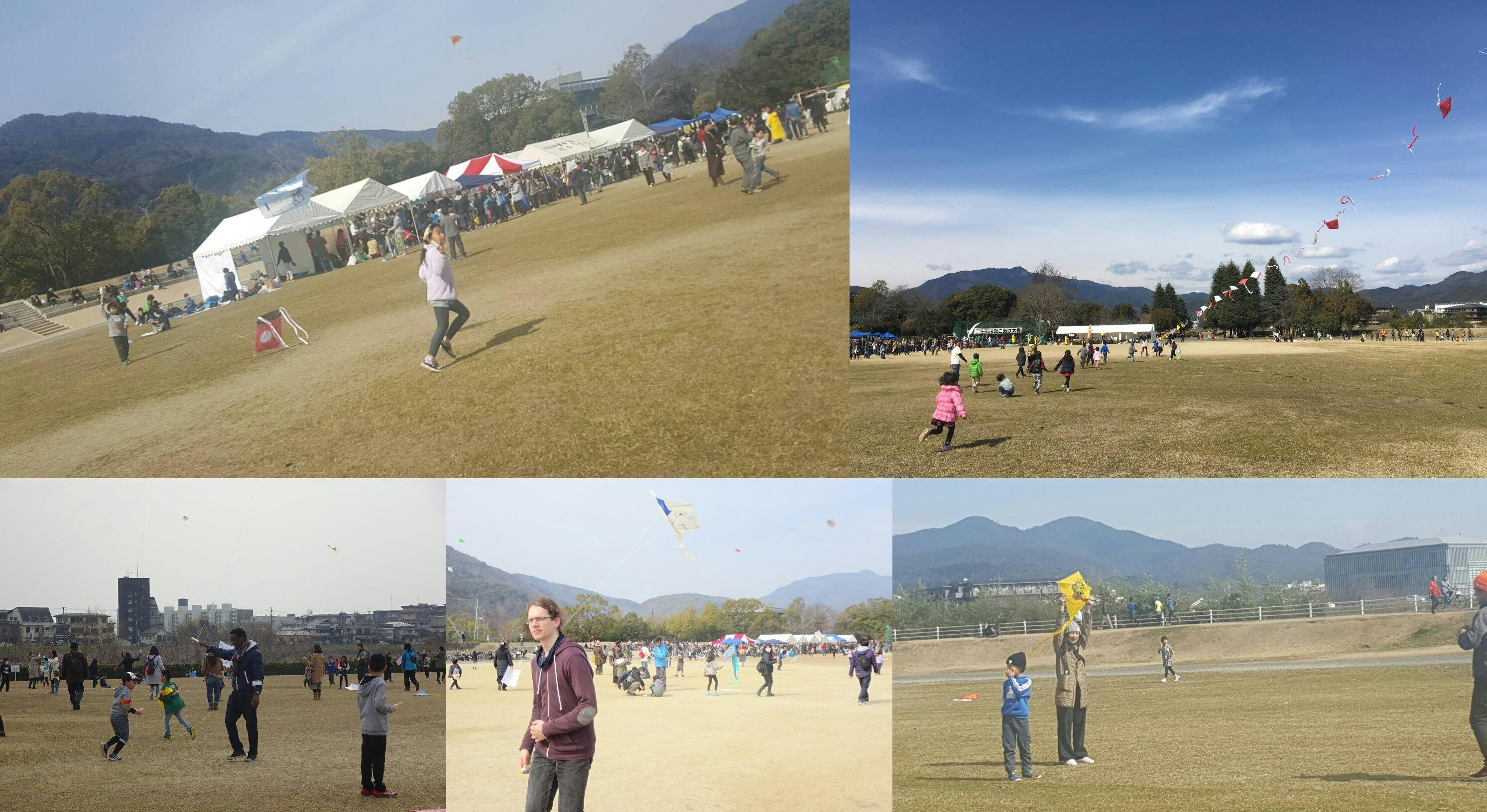京都市内の学童クラブ・児童館などに通う子どもと親たちが、手づくりした凧を持ち寄り、嵐山運動公園で一緒にたこあげを楽しむ企画が、京都こどもてづくりたこあげ大会です。