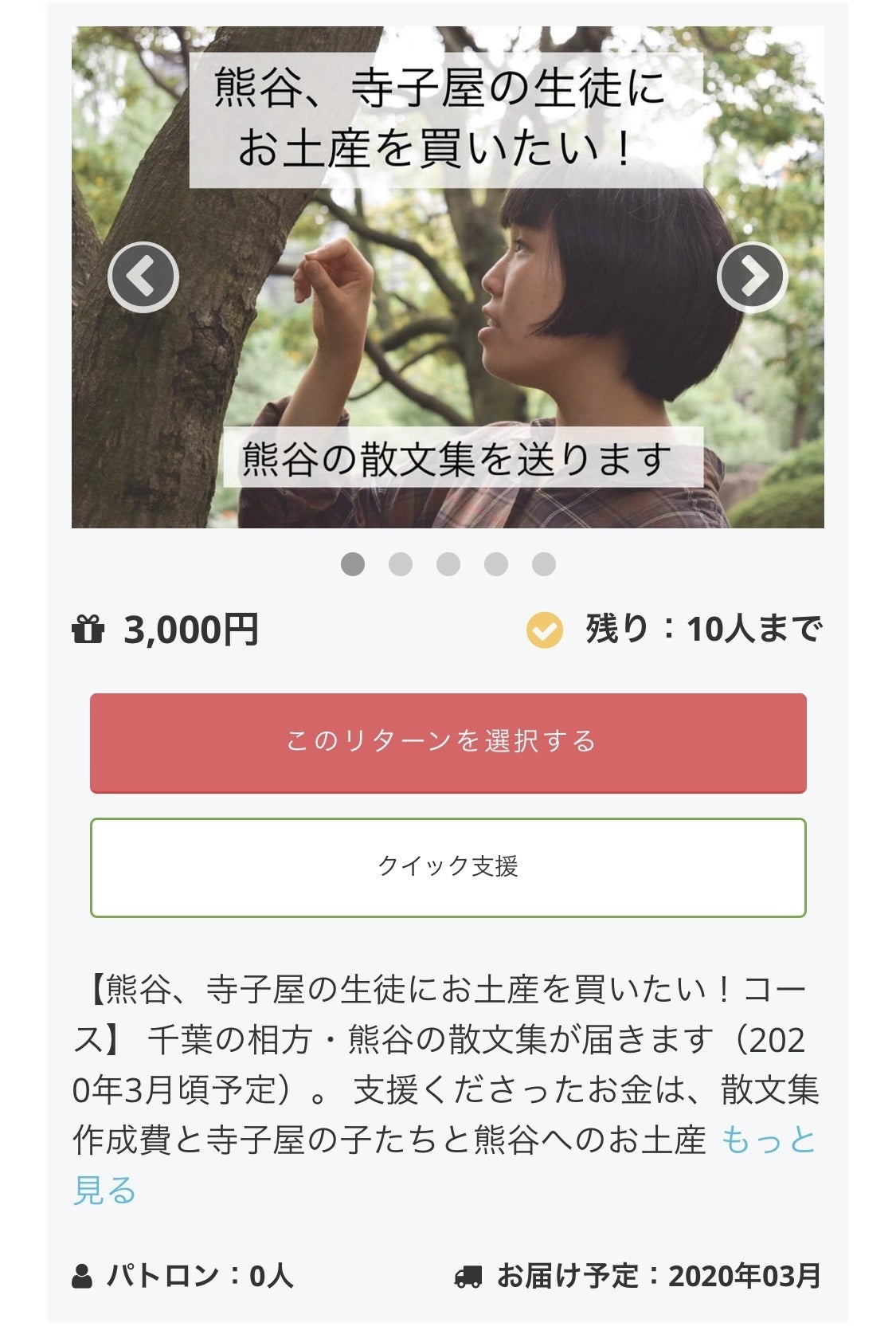 このリターンは熊谷からの散文集が送られてくるのです!!めちゃめちゃおすすめです。以下のURLから彼女の文章を読んでみてください。
