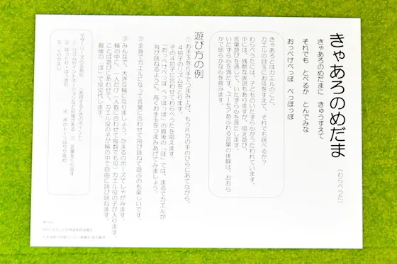 ことばあそびを保育園でも家庭でも簡単に楽しめるようにと制作しました。