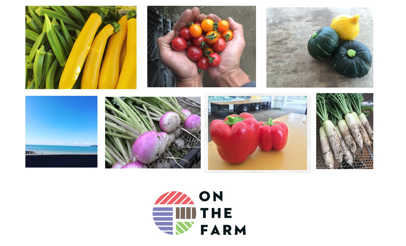 オンザファームは千葉県南房総市・館山市にまたがる農園で、年間約100品目ほどの野菜を有機栽培しています。夏は果菜類(トマト・なす・ズッキーニ・ピーマンなど)、冬は葉物・根菜類(小松菜・ルッコラ・かぶ・大根など)を中心に生産しております。主に都内の八百屋や食料品店、百貨店などに卸しています。また、個人のお客様向けに旬の野菜セットも販売しています。(※台風被災のため、現在は準備中)