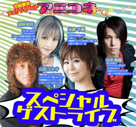 … 今を時めく4人のアニソンアーティストが宮崎に終結!スペシャルゲストによるパワーあふれるアニソンライブ!!怒涛の全18曲ライブは見るものを圧巻すること間違いなし!!