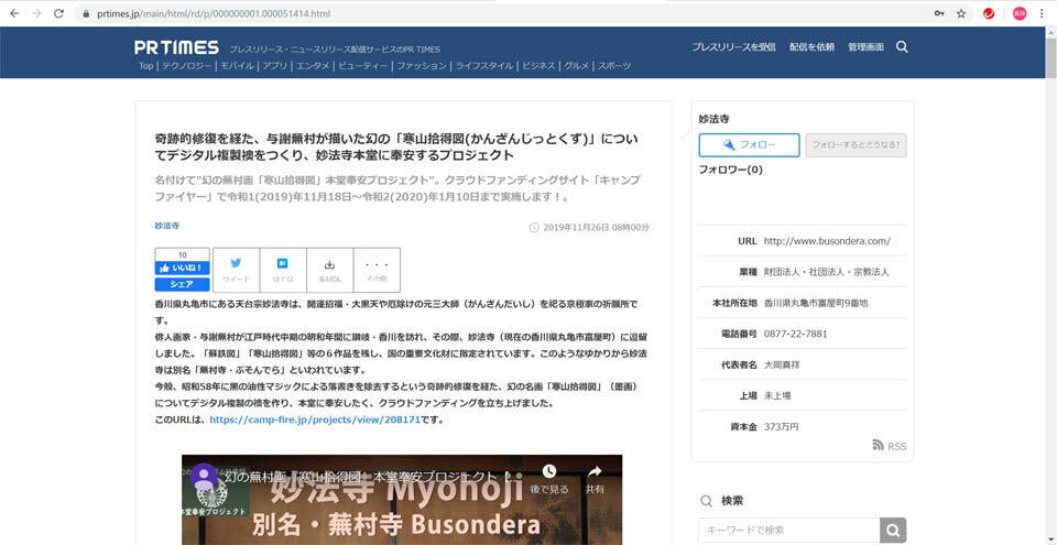 さて、PR TIMES社というプレスリリース・ニュースリリース配信サービスを依頼し、今般、各種メディアやプレスに配信いただきました。一例で時事ドットコムニュースのサイトURLです。