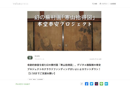 でもって、先ほど1/7付でバリュープレス(valuepress)様に掲載いただきました。