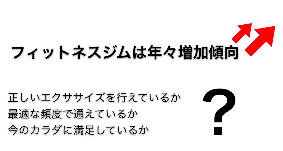 私たちはプロテインやサプリメントをお客様に提供する中で、重要なカラダづくりの根幹は「正しい運動・食事」を行うことだと考えています。ご来店いただいているお客様には日常のエクササイズ頻度や普段の食事をヒアリングした中で、ご予算に応じた最適なサプリメントをご提案しています。自分に合ったエクササイズと食事方法で、ベストな体づくりが出来ている方がいる一方で、不安を持ちながらトレーニングをしていたり、結果がついてこないことに悩まれている方がいる現状を最近感じるようになりました。フィットネスジムがこれだけ増えてきている中で、