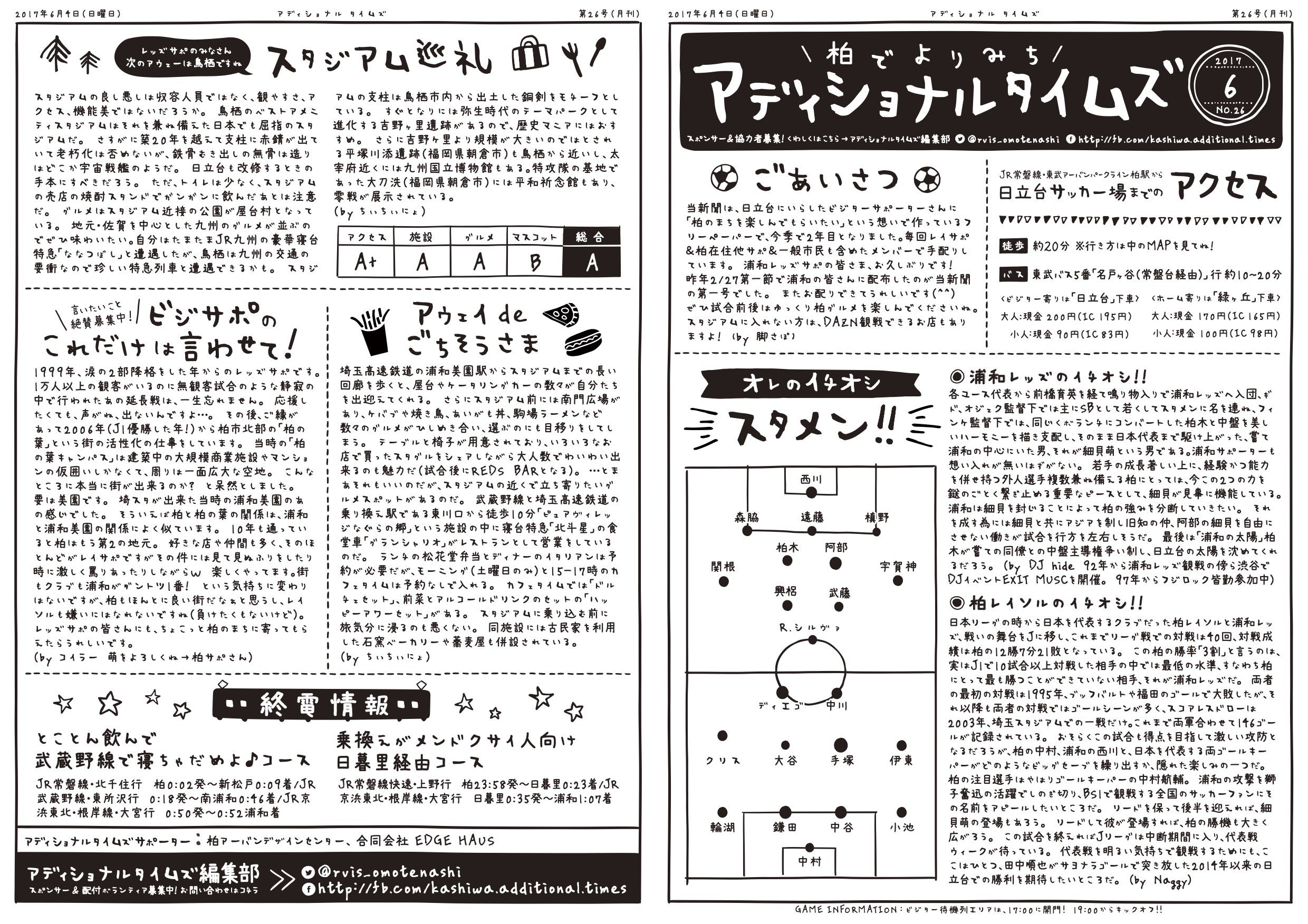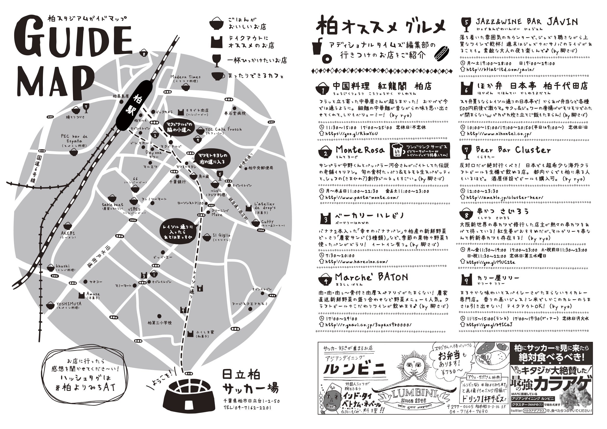 制作と配布にあたり、柏周辺に住む新潟サポや川崎サポなどにも協力をえて、「柏の外からやってくるサポーターに柏のグルメとスタジアムまでの道のりを伝えるフリーペーパー」が始まったのです。