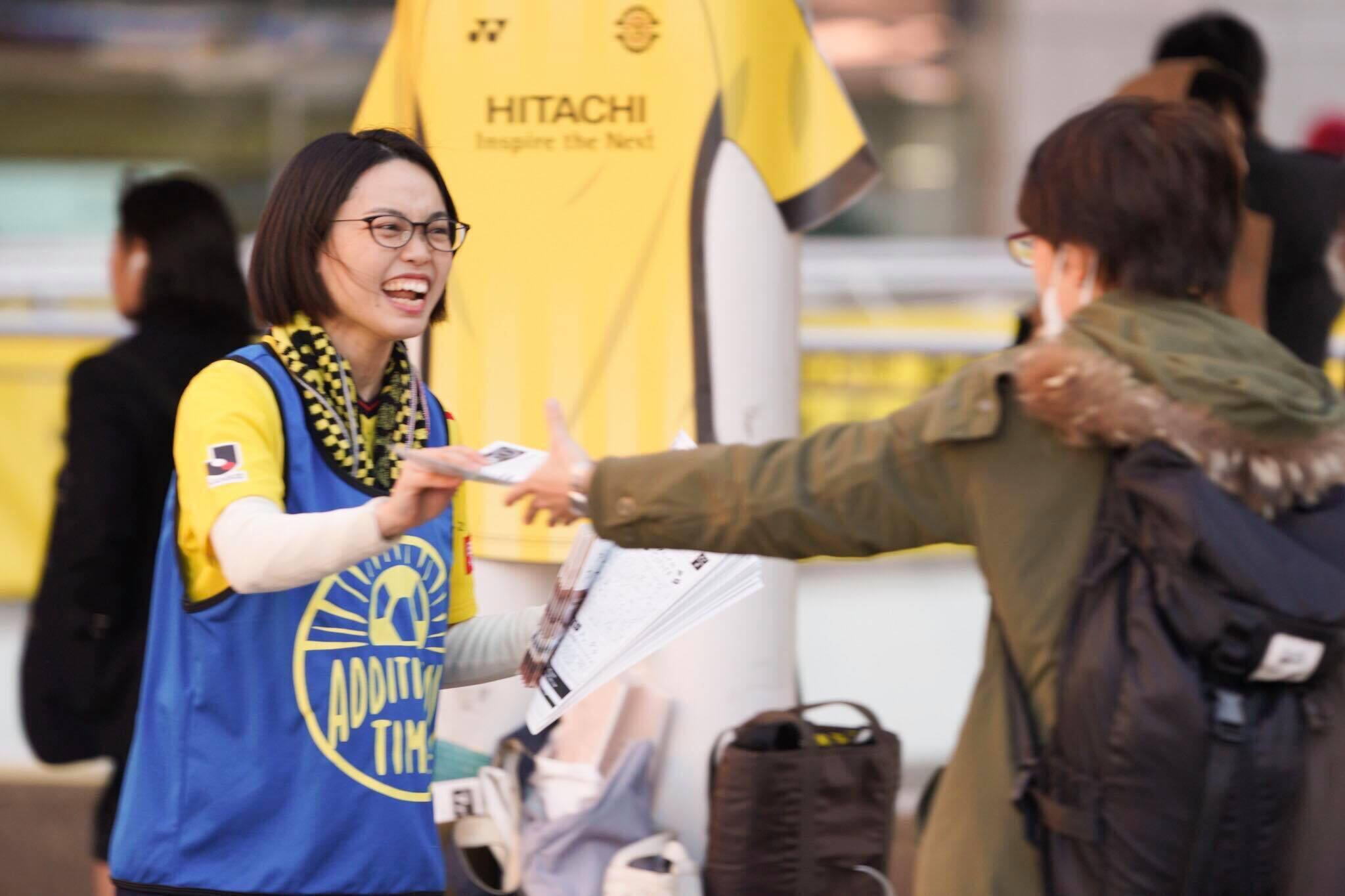 「柏よりみちAT」は柏で行われるJリーグホーム戦の観戦にやってくるビジターサポーターにスタジアムまでの行き方や柏のグルメスポットを掲載したフリーペーパーを制作し、JR柏駅東口前で配っています。