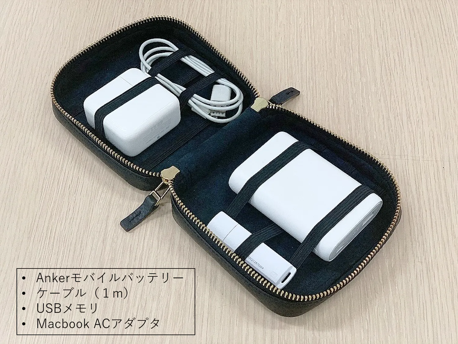 A, 普段はモバイルバッテリーやポケットWi-Fiを入れて持ち歩いています。帰宅してそのまま充電するので、忙しい朝でも持っているか確認したり充電を心配したりする手間が省けて使い勝手がいいです。