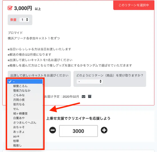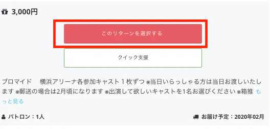 また、選択した推しの商品限定のものもあるので、各リターンをよくチェックして選んでください
