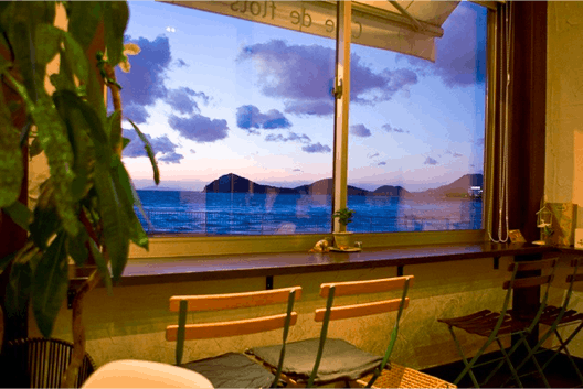 店内からは海を一望でき、夕陽を一年中眺めることができます