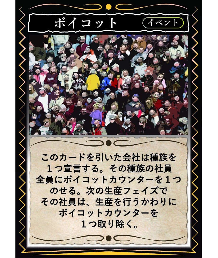 全プレイヤーのターンが終了した後、イベントフェイズになります。スターティングプレイヤーがイベントサプライからカードを公開し、それに書かれた効果が強制的に実行されます。
