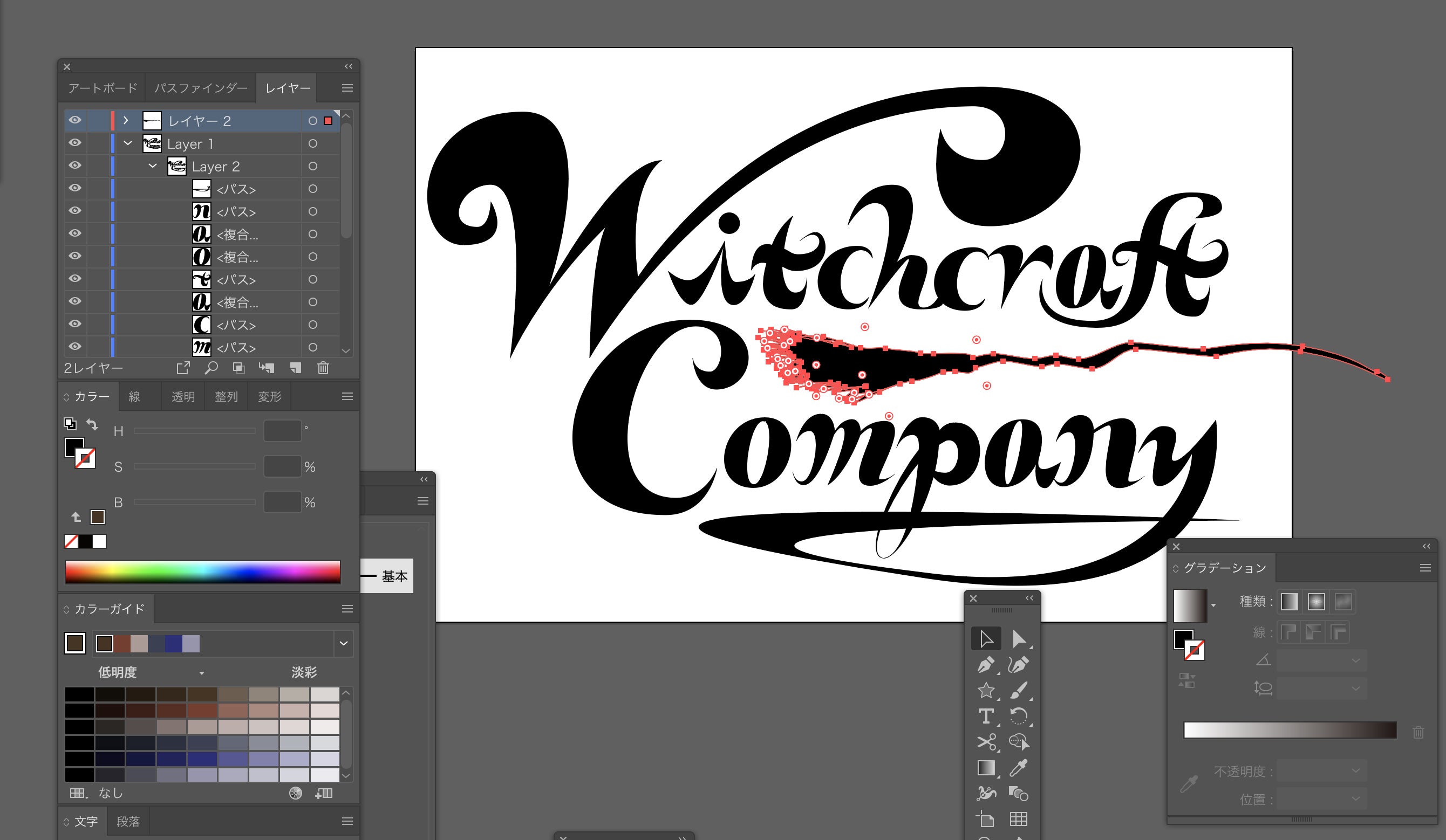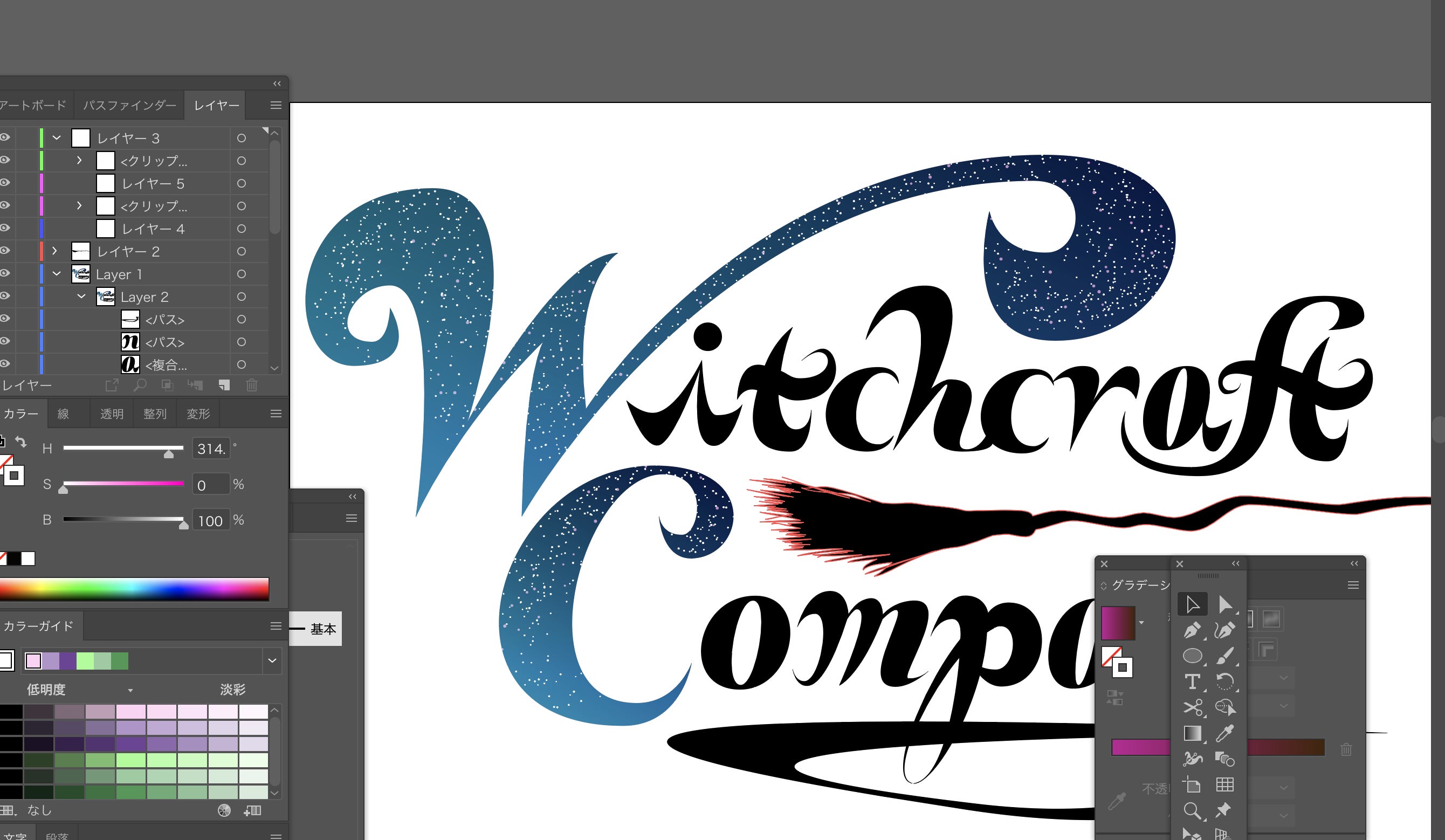 本日は本プロジェクトの主役である「Witchcraft Company」のロゴ制作の様子をお伝えしようかと思います。どんな感じで作っているんだろ?という具合で、軽〜く見ていってくださいませ。