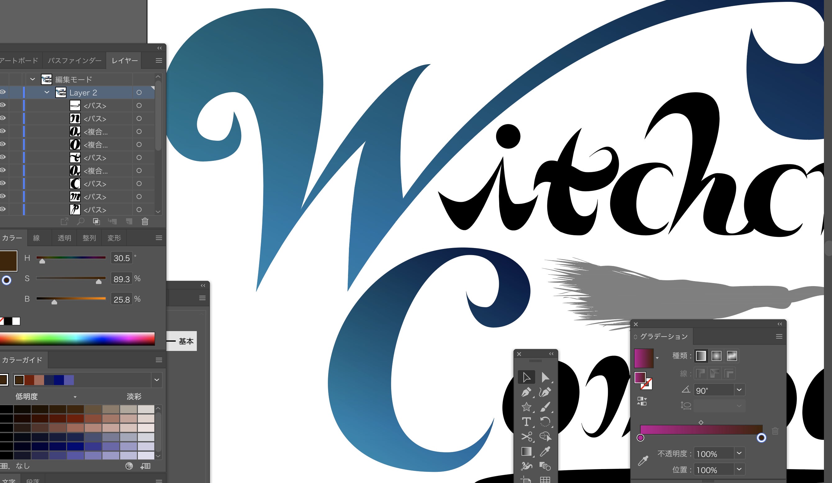 文字の色を変えていきます。グラデーションをかけて……