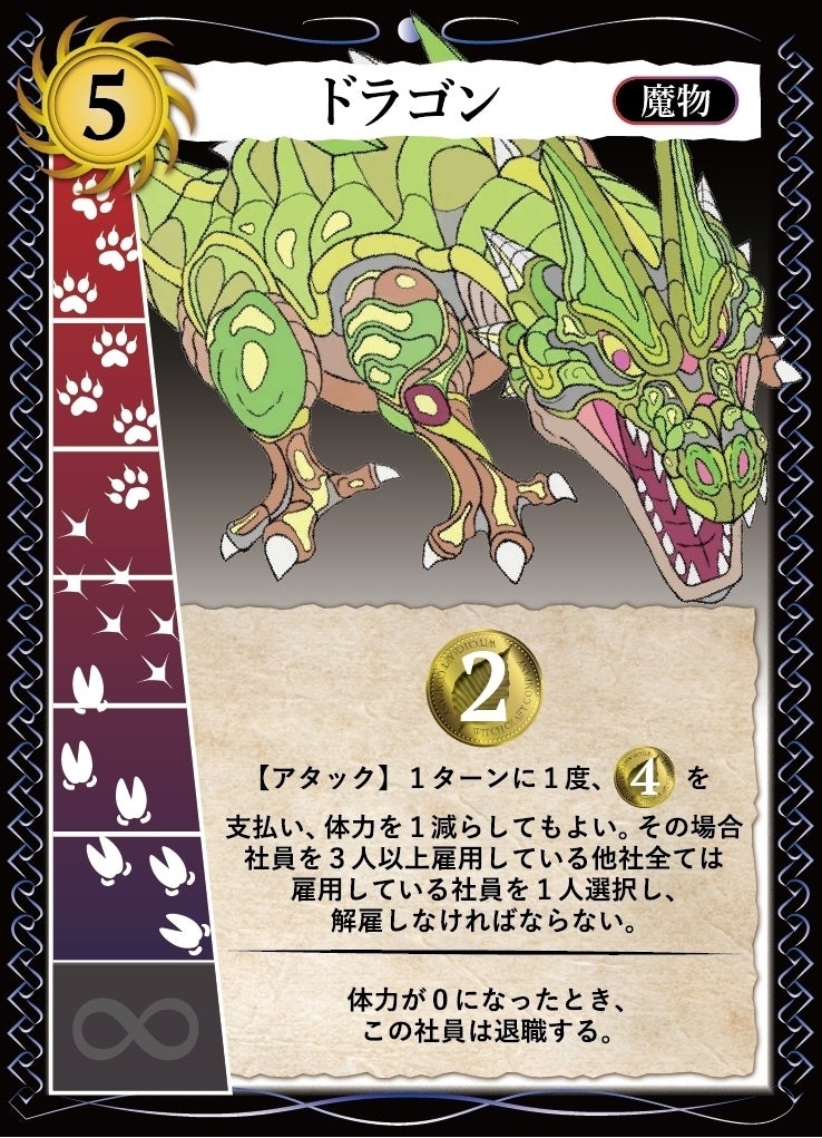 カード紹介は種族ごとに行います。種族には、妖精、悪魔、魔女、人間、魔物が存在します。紹介のトップバッターは魔物です。魔物には使いやすいカードが多いので、オークションフェイズで人気カードになりやすい印象を受けます。