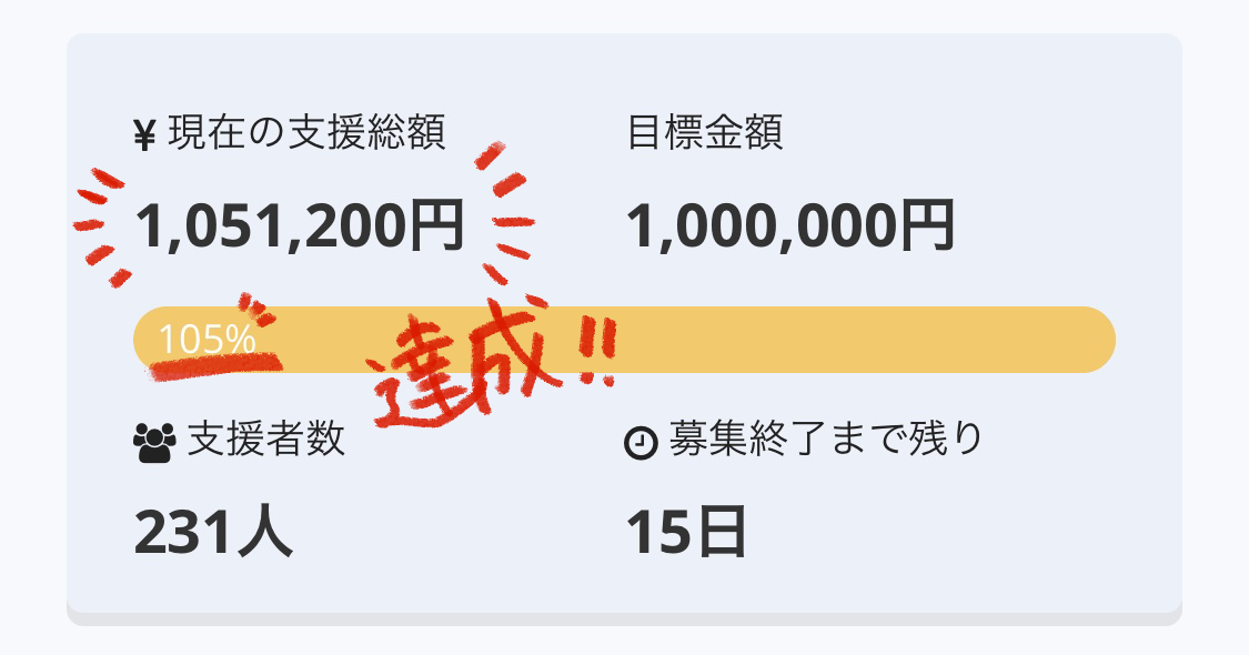 1月22日に開始したクラウドファンディングが無事に終了致しました。みなさん、たくさんの応援をありがとうございました!この80日間で支援してくださったパトロン数は268名様最終的に集まった金額は1,214,000円です。なんと、達成率は121%!!ご存知の方もいらっしゃるかと思いますが、今回クラファンをするにあたってLive Art Auctionの運営メンバーや出演者様だけでなく、イベントを応援してくださる作家の皆様にも作品をご提供いただき、毎日のように新しいリターンを公開してきました。多くの作家の皆様、支援をしてくださった皆様のおかげで達成することができました。本当にありがとうございました!リターンについてはまた改めて、支援をしてくださった皆様にご連絡させていただきますので、もうしばらくお待ちくださいませ。そして、Live Art Auction2020 の開催は2020年6月28日を予定しています。世の情勢を鑑みるとイベント開催に関しては非常にデリケートな話題になってきているところではありますが、状況によっては開催延期などの考えも含めて柔軟に対応していきたいと思います。今は運営メンバー一同、イベント開催に向けてしっかりと準備を進めていきたいと思います。本当にありがとうございました!