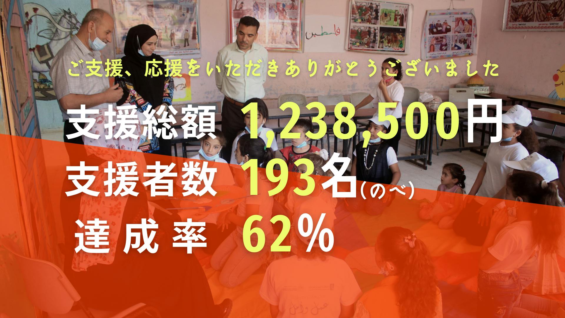 数字には現れない、集まったみなさんからのエネルギーも受け取め、応援をパレスチナに届けます。このステージに進めたのは皆さんのおかげです。