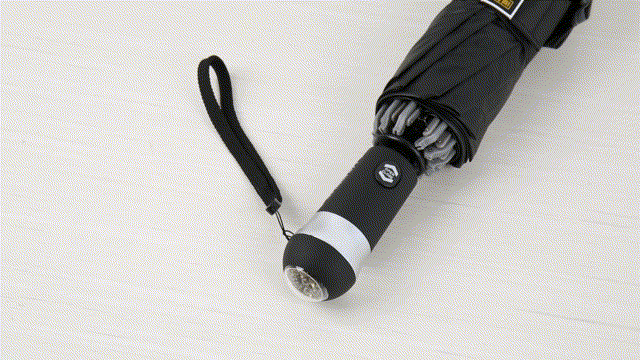 ●傘の持ち手にLEDライトを装備、暗闇でも安心、緊急時や防災品としても使用可能