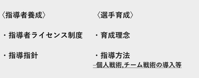 指導者の養成、選手の育成で