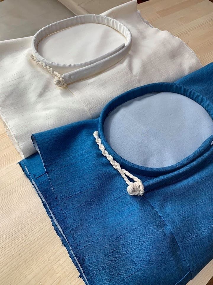 クニトコタチ〜平和へのいのりで白龍と青龍が着用する衣装はコーディネーター南江千代が織から始めたものです。