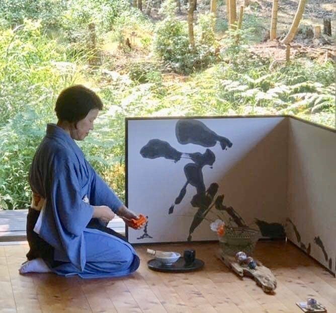 自ら書・茶・花の指導も行う。2015年宝生流能楽師 辰巳満次郎氏らと共にイスラエル・