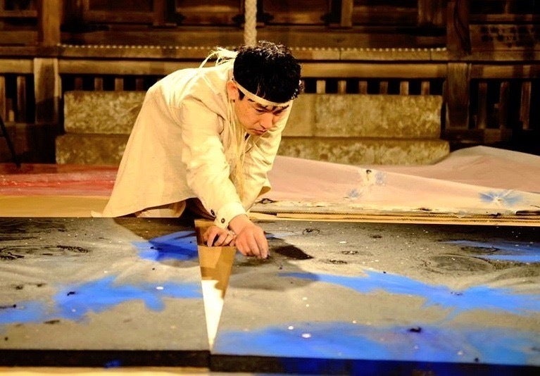 よる独自の描画手法を用いて、岡太神社・大瀧神社「千参百年大祭・御神忌」での「絵画点火式奉納」や、