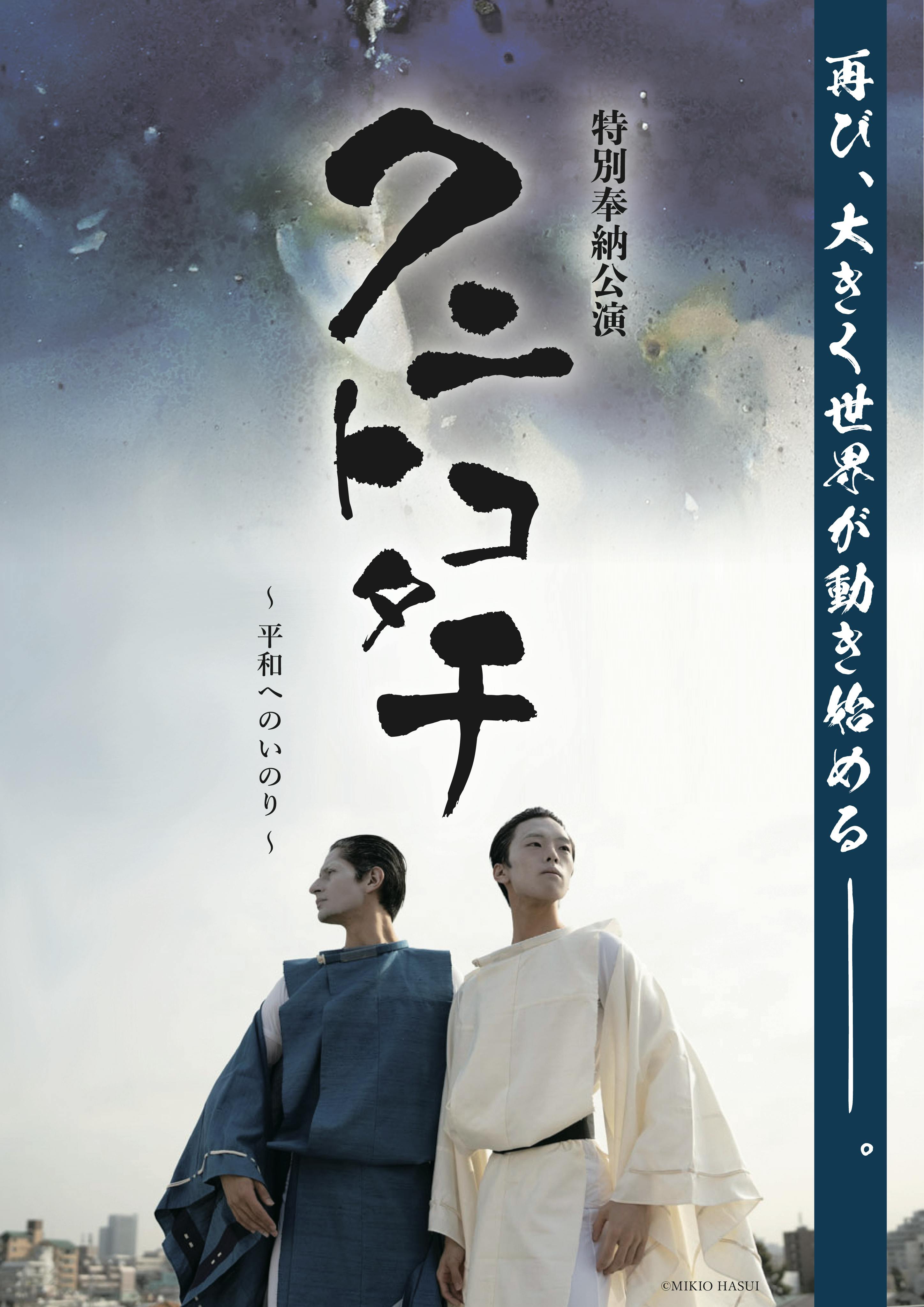 「〜クニトコタチ〜平和へのいのり」は、日本の伝統文化芸術と現代芸術の融合によって、クニトコタチノミコトの目覚めを促し、平和と調和のためにいのる公演となっております。