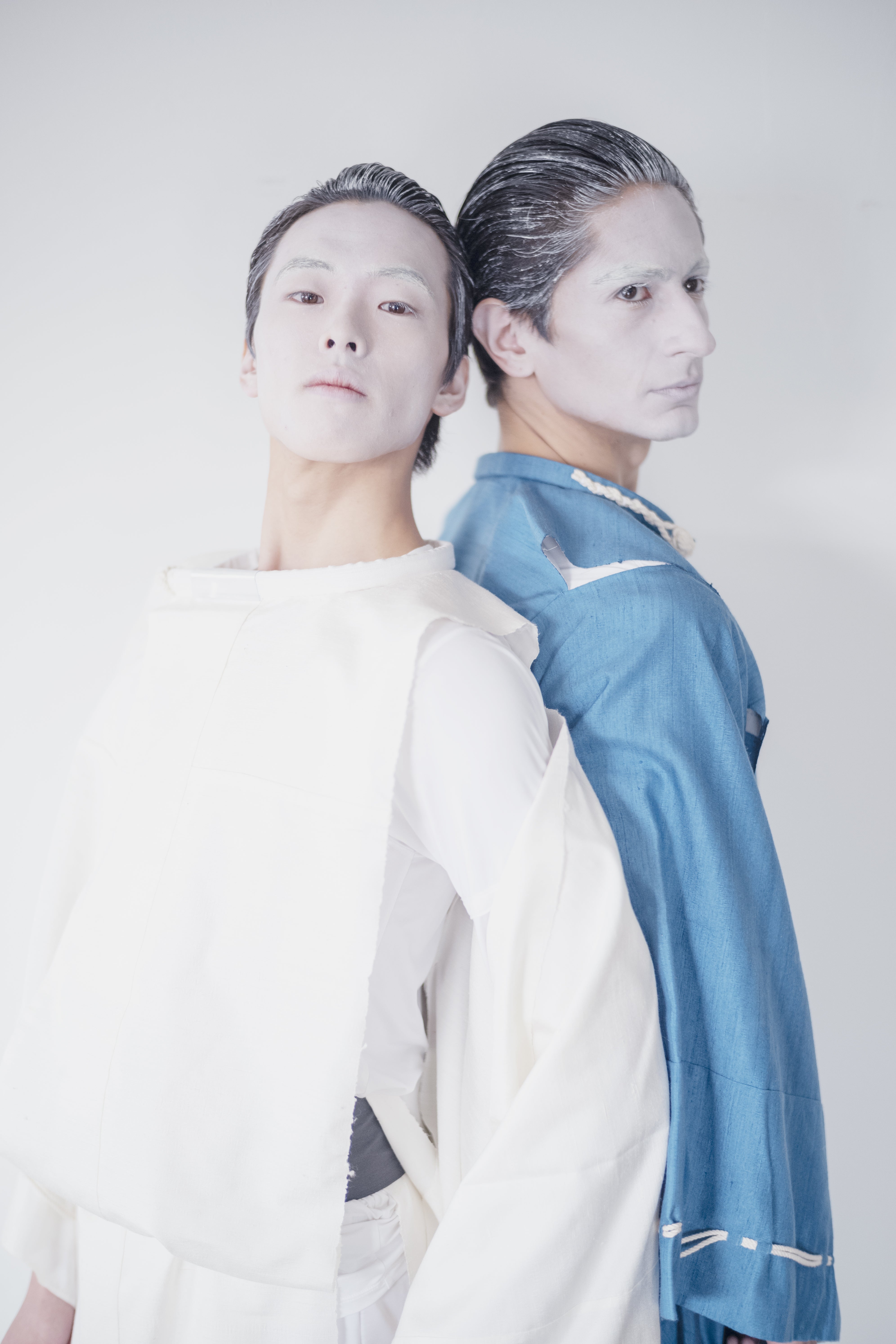 Upon hearing about the story of Kunitokotachi I could feel my heart race in excitement. And so it came that I would take the pictures of Braulio and Yuki. The place was the rooftop of my studio in Gohongi, Tokyo. It all seemed as if planned by destiny, the weather was beautiful. Without prior planning both of the dancers started moving as if they were being led by someone and from that, beautiful pictures were born.