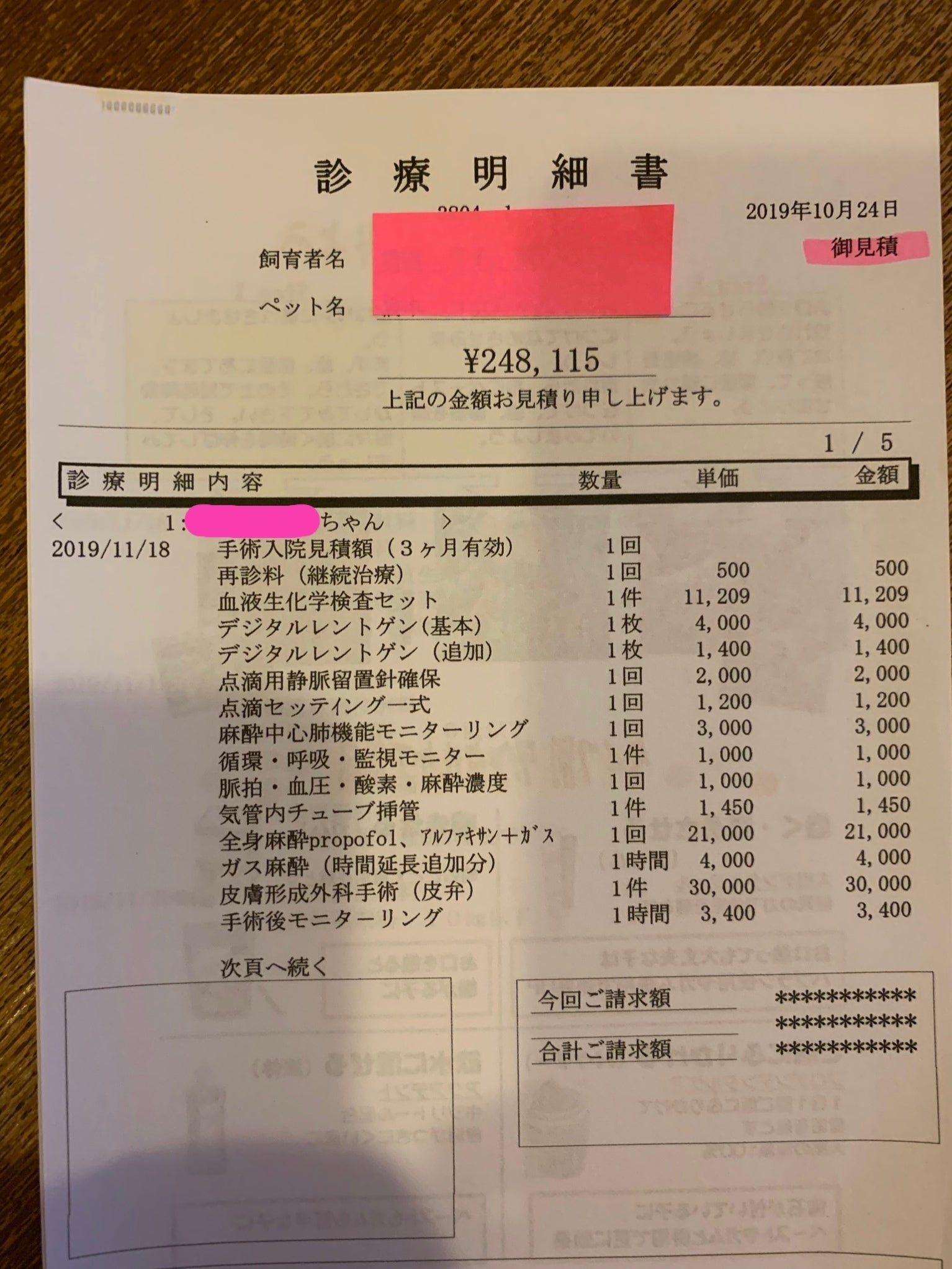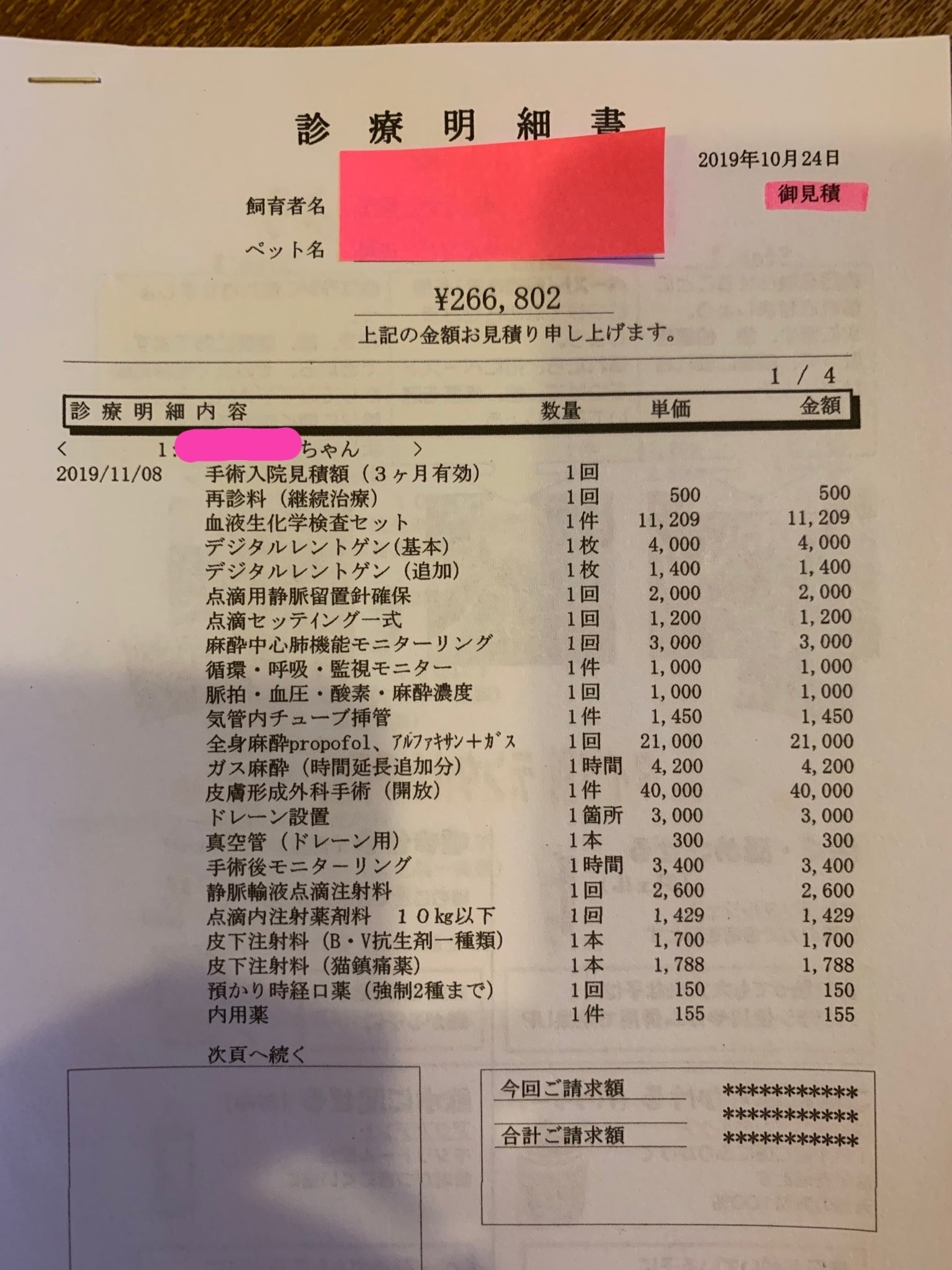目標金額は上記手術・入院費用の他に投薬、術後の通院、諸経費も含んでいます。